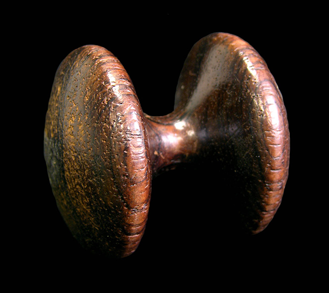 Some letter carriers chose to use wooden, dumbbell-shaped door knockers on their rural delivery service rounds. Convenient, lightweight and easy to grasp, the knocker saved wear and tear on hands and sounded a loud crack to announce the carrier’s arrival.