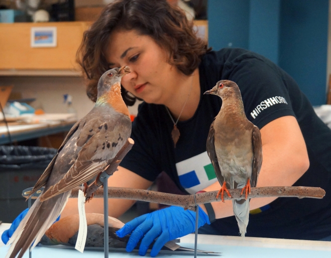 In this photo, Martha and a fellow male passenger pigeon are getting a touch up by exhibits specialist Megan Dettoria before becoming the centerpiece of the new exhibit “Once There Were Billions: Vanished Birds of North America.” The exhibit opens June 24 at the Smithsonian’s National Museum of Natural History in Washington, D.C.
