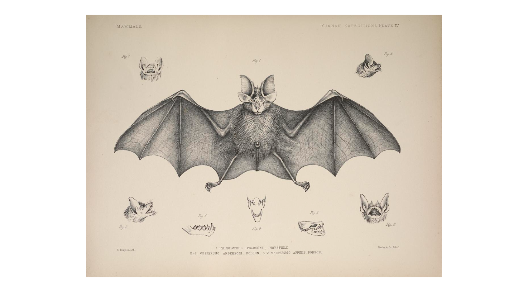 This bat illustration is from the 1878 book, Anatomical and zoological researches: comprising an account of the zoological results of the two expeditions to western Yunnan in 1868 and 1875; and a monograph of the two cetacean genera, Platanista and Orcella, by John Anderson (1833–1900). It is in the Smithsonian Libraries and Archives collection.