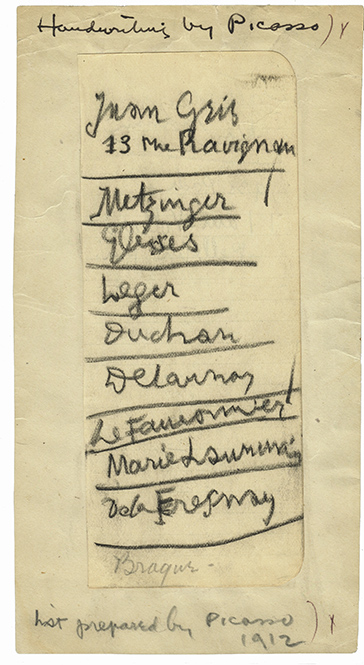 Pablo Picasso’s List, 1912, Walt Kuhn, Kuhn family paper and Armory Show records, 1859-1978, courtesy of Smithsonian’s Archives of American Art