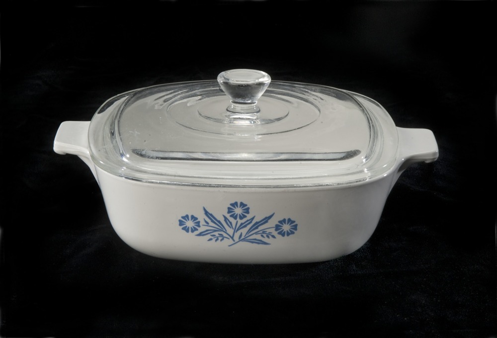 You might recognize this dish as a kitchen staple during the holiday season. This white casserole dish, manufactured by CorningWare in 1965, features the company’s signature blue cornflower design.