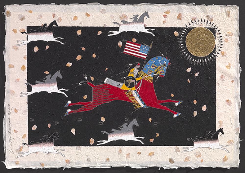 This artwork is in the collection of the Smithsonian’s National Museum of the American Indian. It can be viewed in the online exhibition “Horse Nation.” And watch a video about the value of horses in Native cultures; it is part of the museum’s Native Knowledge 360º, which provides educators and students with new perspectives on Native American history and cultures. It offers educational materials, virtual student programs, and teacher training that incorporate Native narratives, more comprehensive histories, and accurate information to enlighten and inform teaching and learning about Native America.
