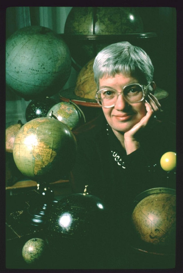 Vera Rubin among the many globes she collected, circa 1992. Smithsonian’s National Air and Space Museum.