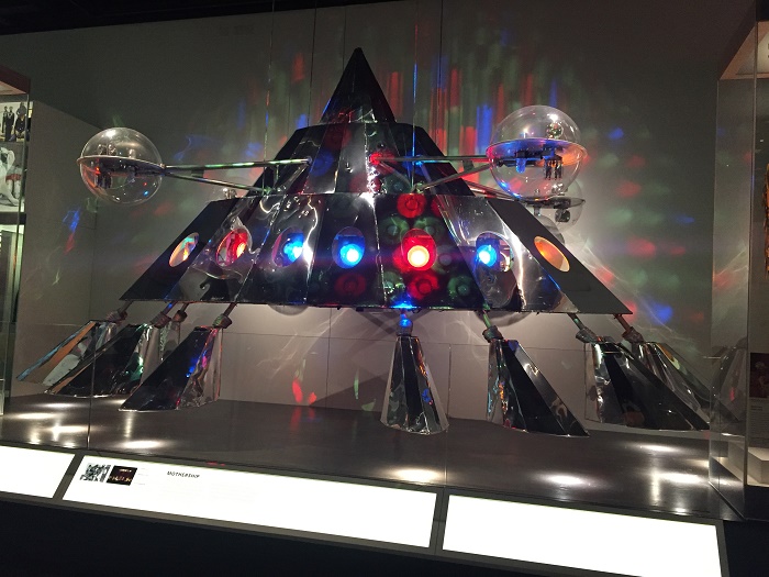Shown here is a near-exact replica of the slightly larger Mothership (believed to have been dismantled) that was used exclusively at the closing moments of concerts during the height of the band's popularity from 1976 to 1981. The replica was built from metal, plastic and glass in the mid-1990s and used on Parliament-Funkadelic’s "Mothership Reconnection Tour."