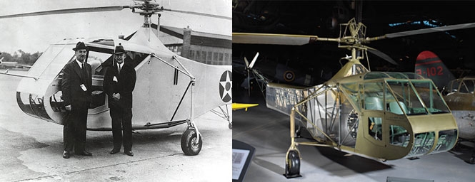The XR-4 made its first flight Jan. 14, 1942, with Sikorsky’s test pilot, Les Morris, at the controls. In May of that year, Morris flew the XR-4 from the Sikorsky production plant in Connecticut to the Army Air Force test center at Wright Field in Dayton, Ohio. This photo shows Sikorsky, left, with Orville Wright, right, the pioneer of flight, at Wright Field after the completed delivery May 18, 1942.