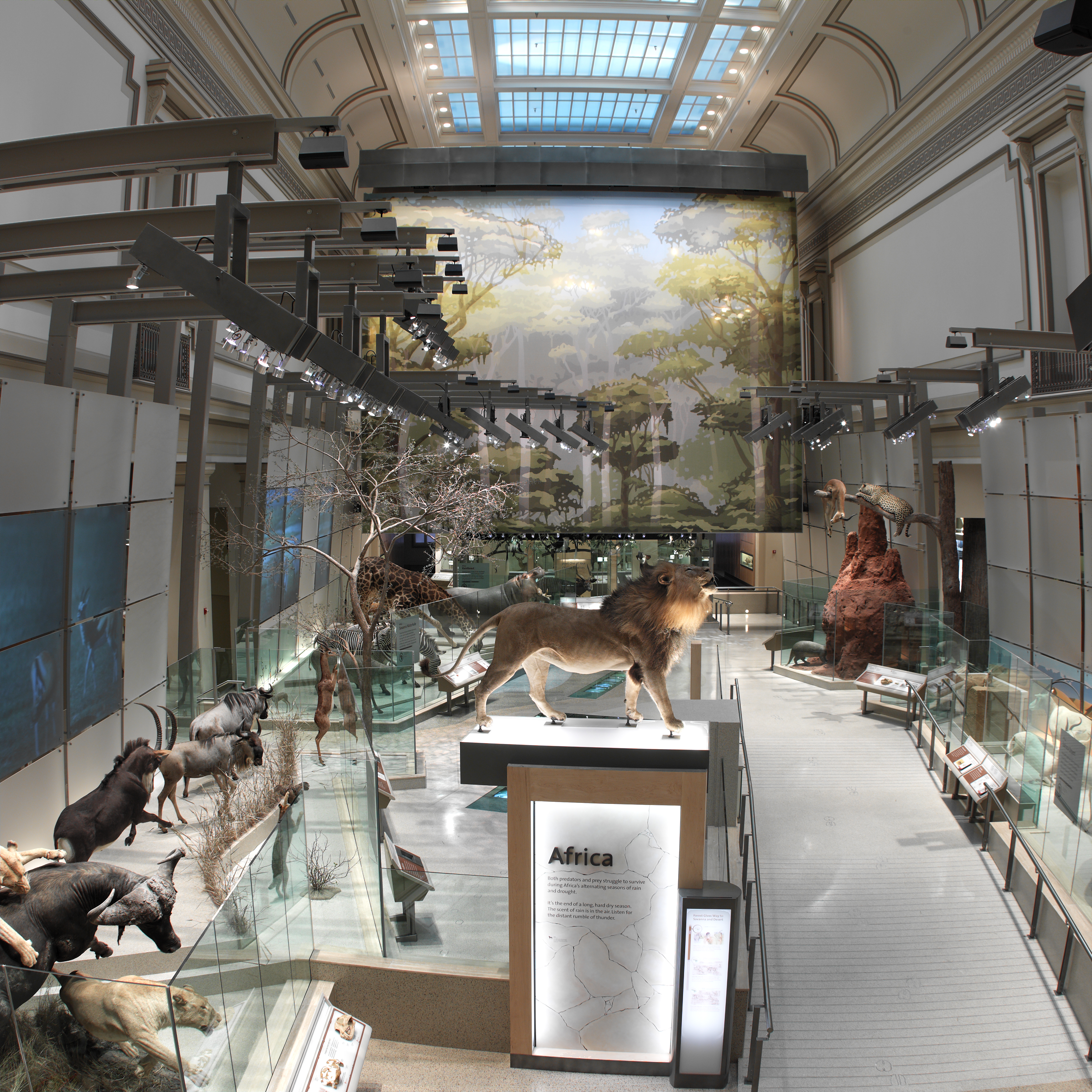 Visitors to the new mammal hall’s section on Africa can experience an end to the dry season when a thunderstorm rolls through the new hall.