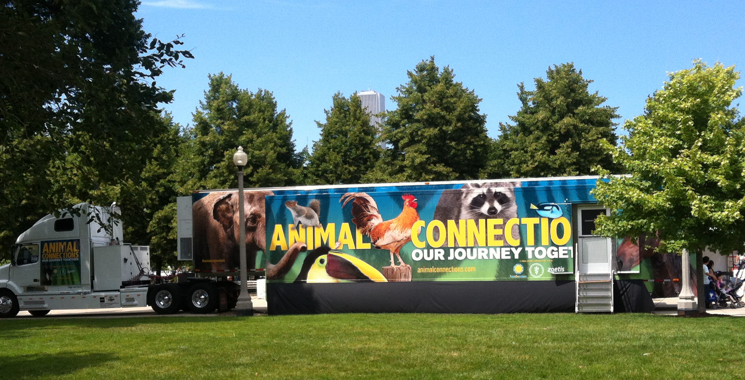 "Animal Connections: Our Journey Together" is a custom-built exhibition housed on an 18-wheel truck that introduces visitors to the complex bond between humans and animals.