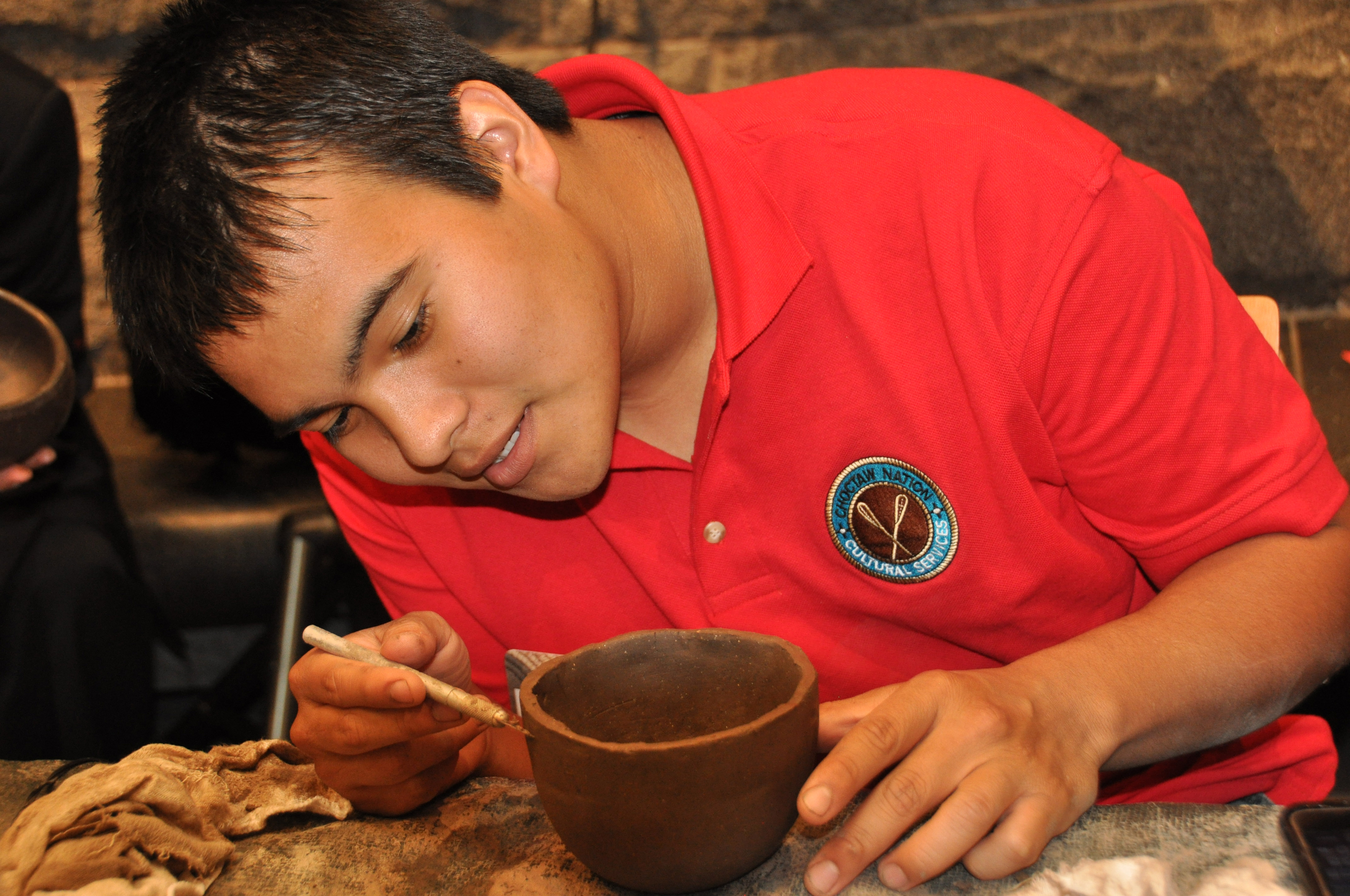 Choctaw tribal member showing how traditional pottery is made.