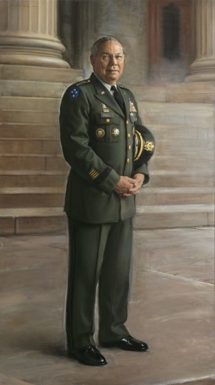 This portrait is the most recently commissioned portrait for the National Portrait Gallery. The artist, Ronald Sherr shows General Colin Powell in front of Theodore Roosevelt Hall at the National War College at Fort McNair in Washington, D.C.