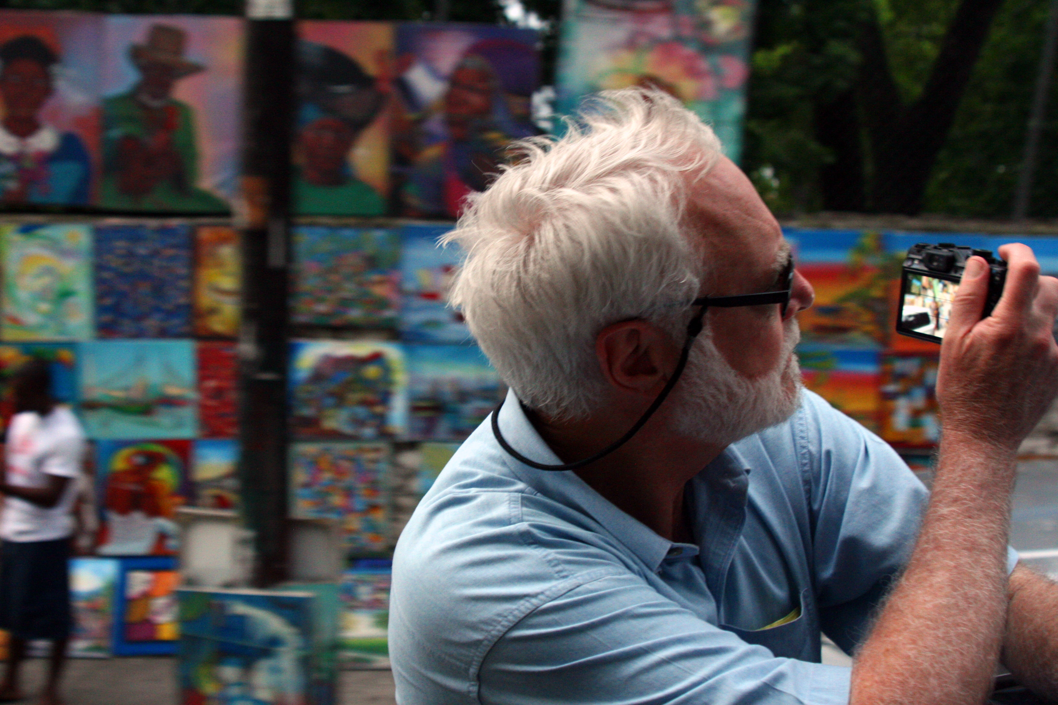 Secretary Wayne Clough photographs one of Petionville’s street-side art galleries.