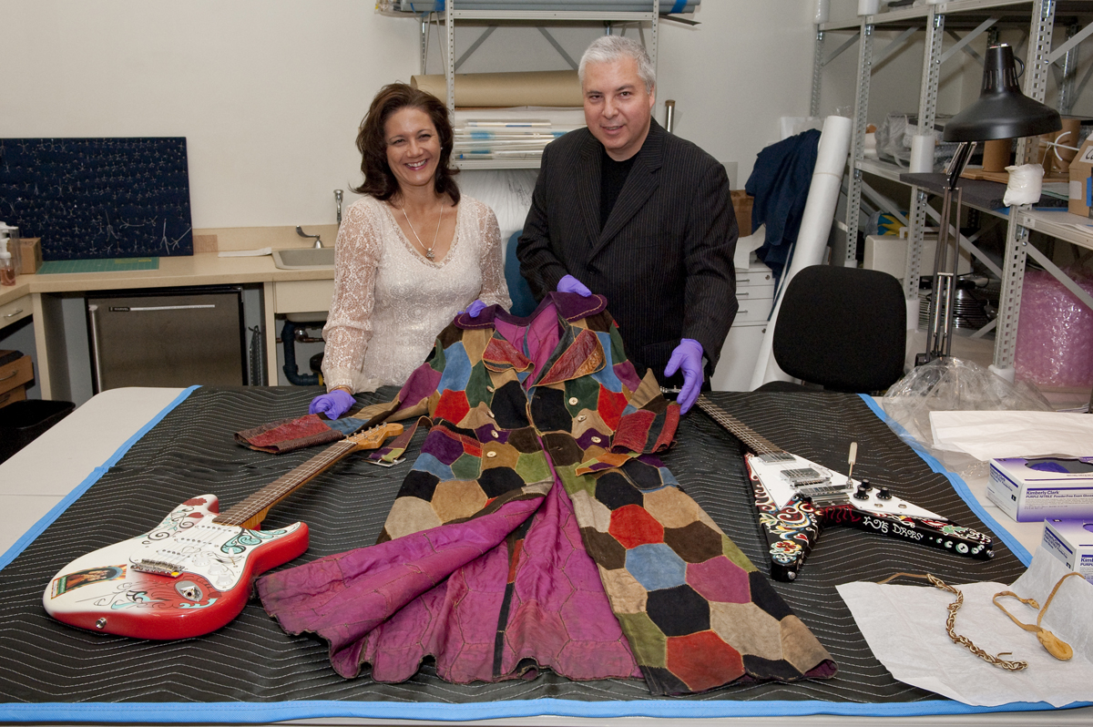 Some personal items belonging to Jimi Hendrix arrived at the National Museum of the American Indian accompanied by his sister, Janie Hendrix. The coat is the signature piece in the upcoming exhibition, “Up Where We Belong: Native Musicians in Popular Culture” which opens Thursday, July 1.