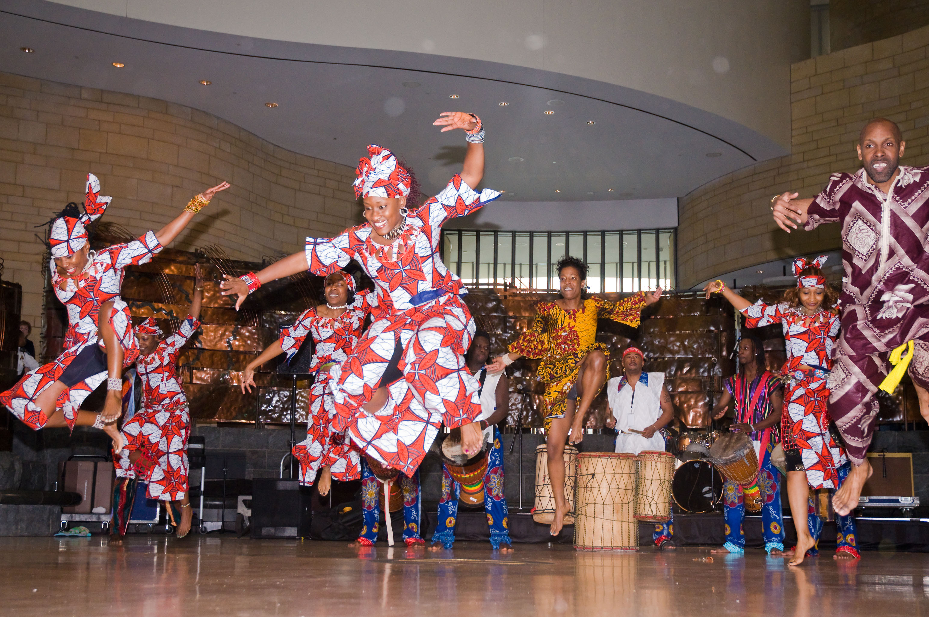 KanKouran West African Dancers performing on Jan. 19, 2009 at the “Out of Many: A Multicultural Festival of Music, Dance, and Story” program at the Smithsonian's National Museum of the American Indian's Potomac Atrium in Washington, D.C. A Washington area institution, KanKouran West African Dance Company was founded in 1983 to introduce African dancing and drumming to American audiences. In the Mandingo culture of Senegal, KanKouran is a spiritual guide who teaches youth the meaning of manhood and womanhood. True to this spirit, the dance company works extensively with young people through its youth groups and children’s classes.