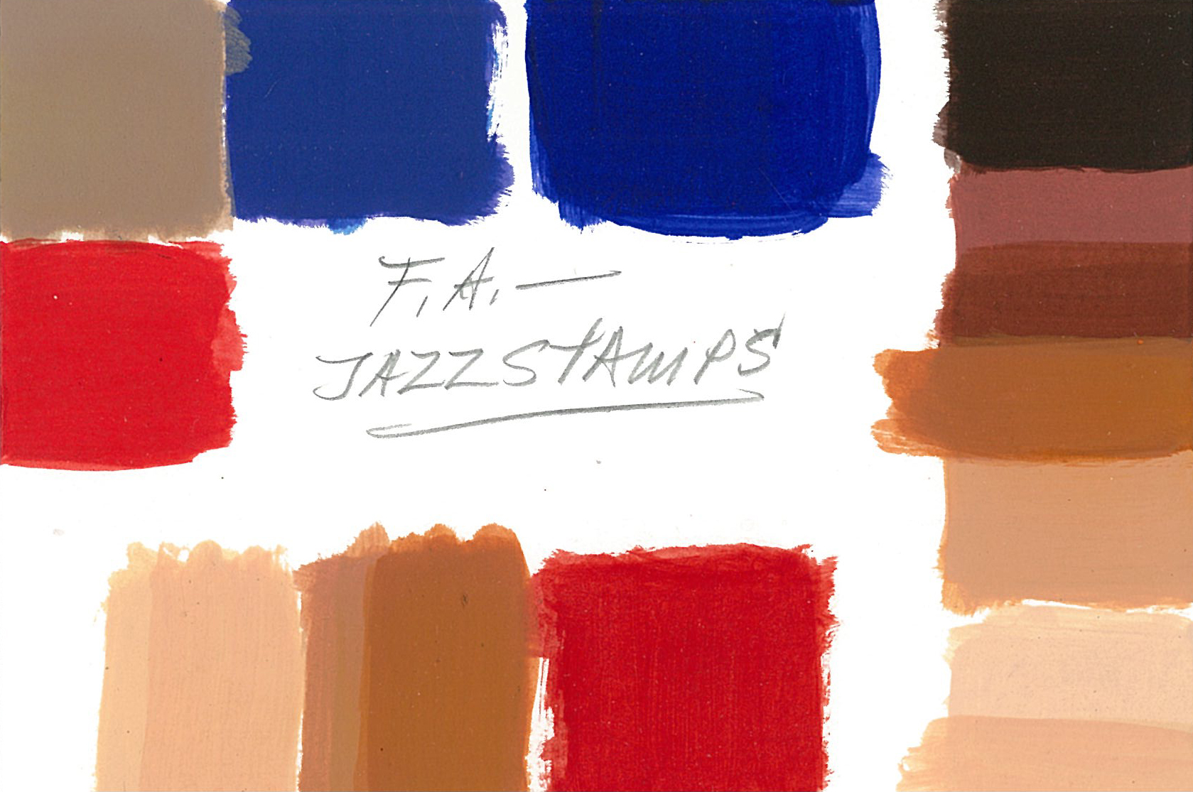 Howard Koslow’s color palatte for the 1994 Jazz Singers stamps in the American Music commemorative series.