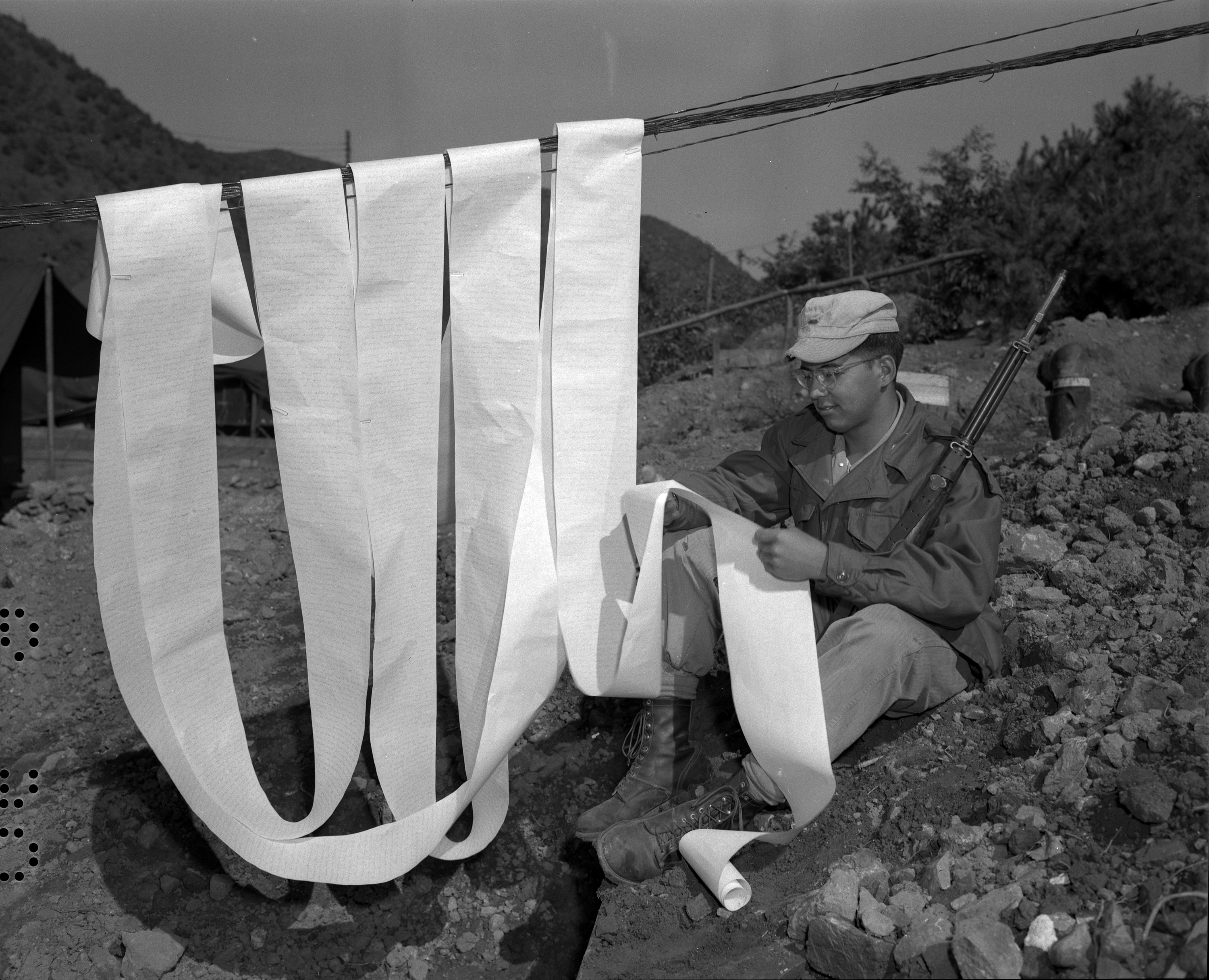 Marine Corporal Richard Luartes took 50 minutes to read this extraordinarily long letter from his girlfriend, 1952.