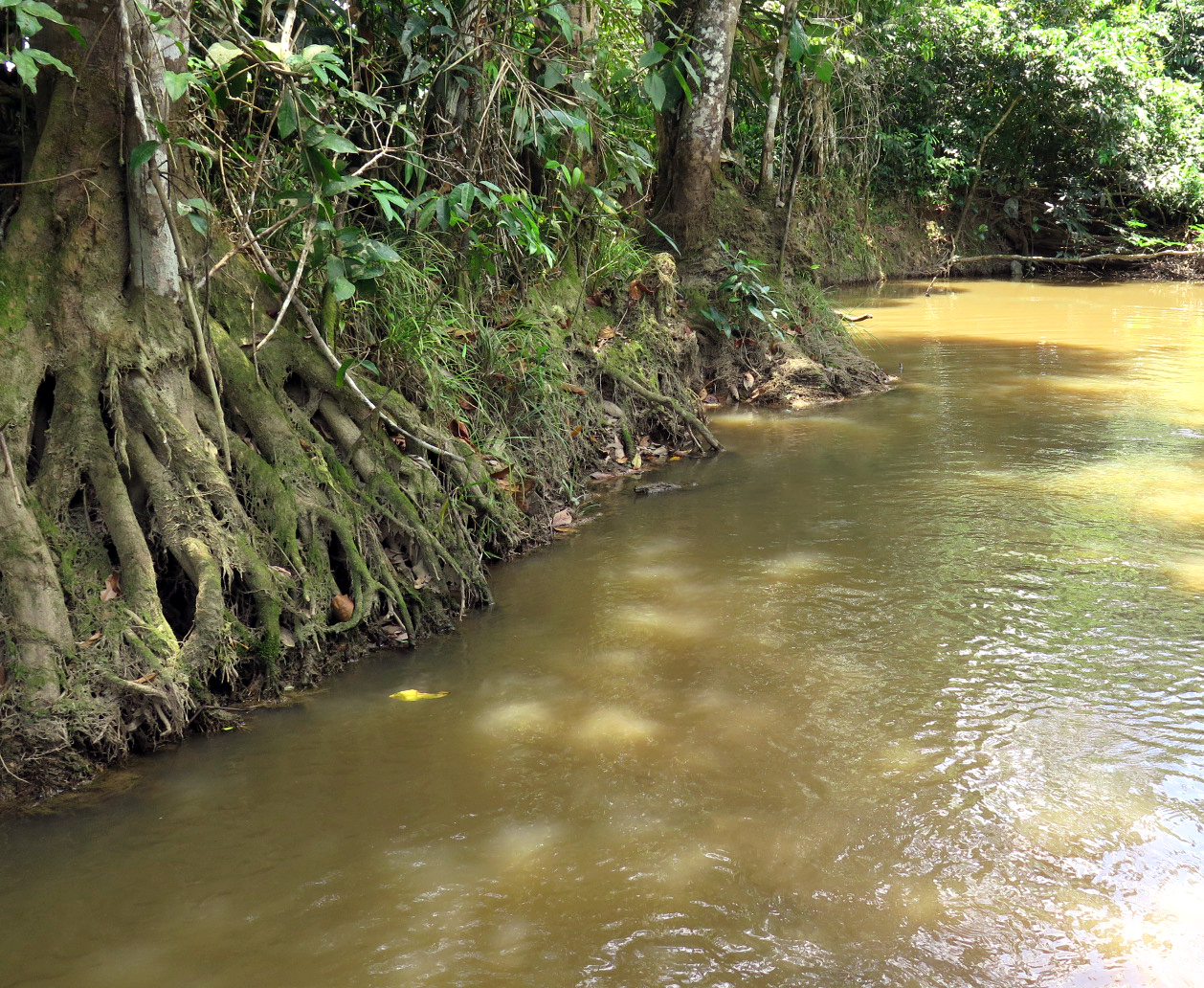 The river microhabitat where Poecilocharax rhizophilus was found. The species is named after the microhabitat where it lives among the roots of riparian vegetation (rhiza = roots; philos = attraction) that grow along the banks of muddy rivers.