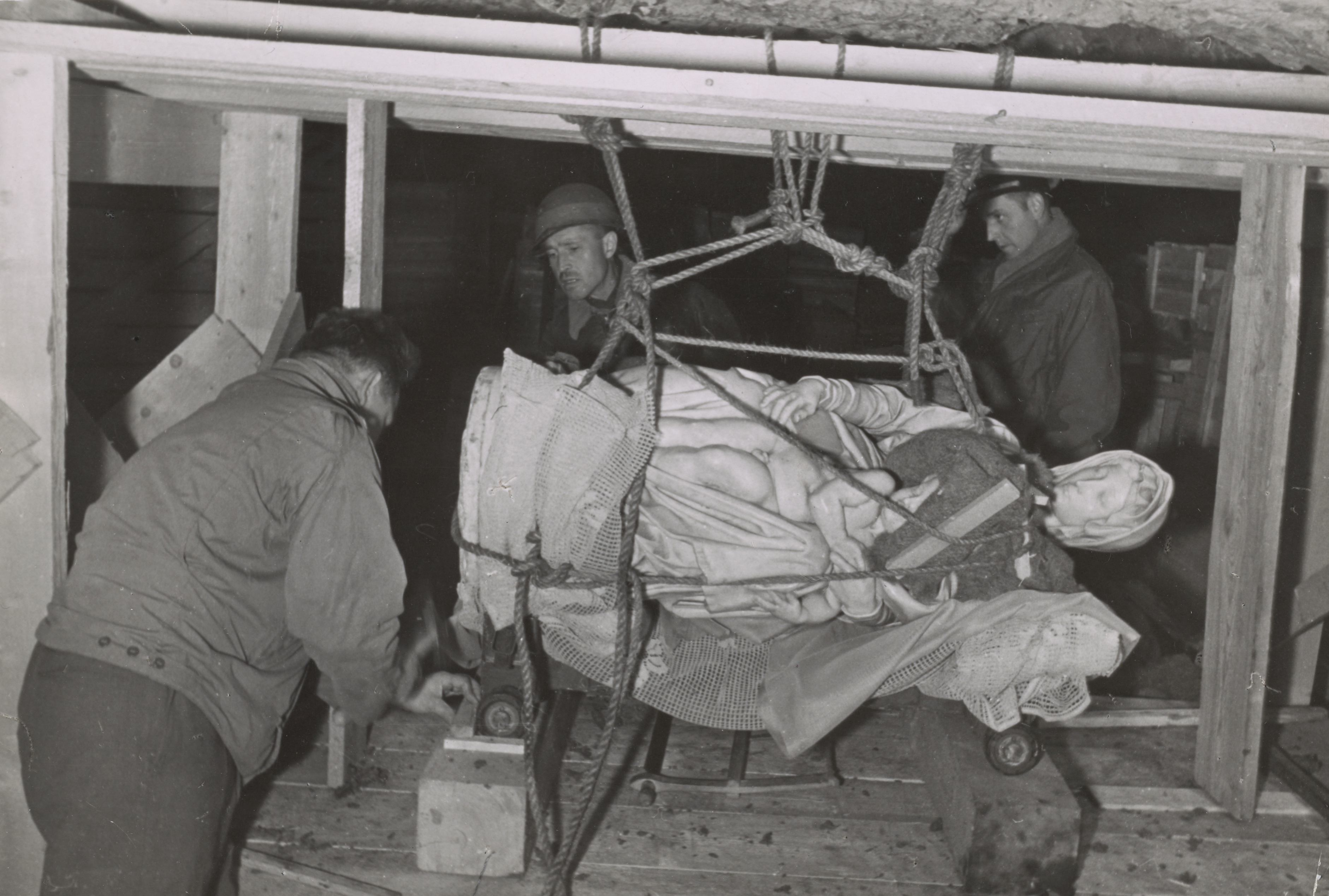 Los Hombres de los Monumentos rescatan la escultura de Miguel Ángel “La Virgen y el Niño”, Altaussee, 1945.