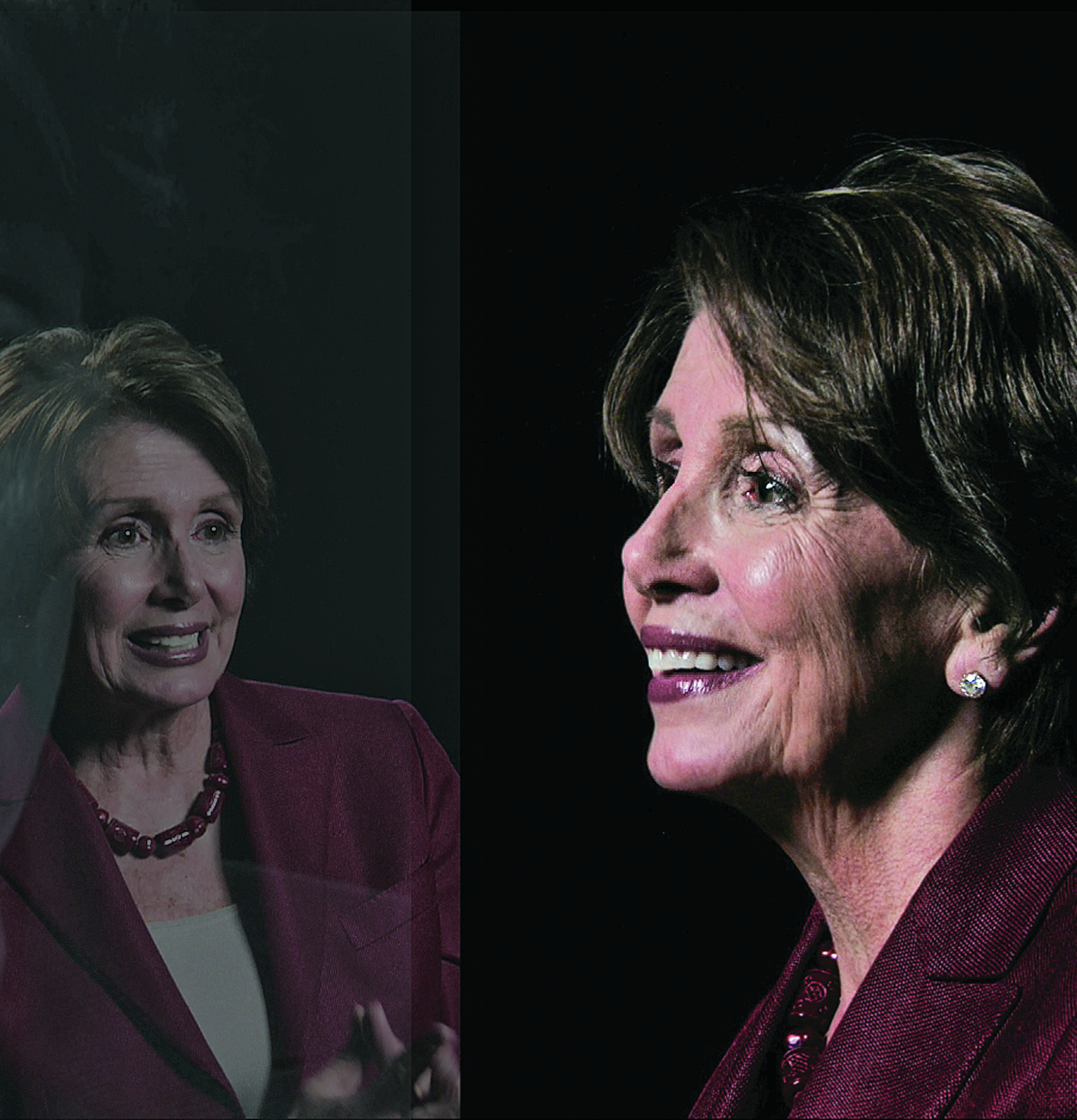 This is Rep. Nancy Pelosi, (D-Calif.) in a still from “The Network,” an innovative group portrait by the artist Lincoln Schatz.