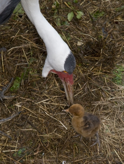 On the heels of spring’s arrival, a wattled crane (Bugeranus carunculatus) chick hatched at the Smithsonian’s National Zoo March 20, the third of its kind in the park’s history.