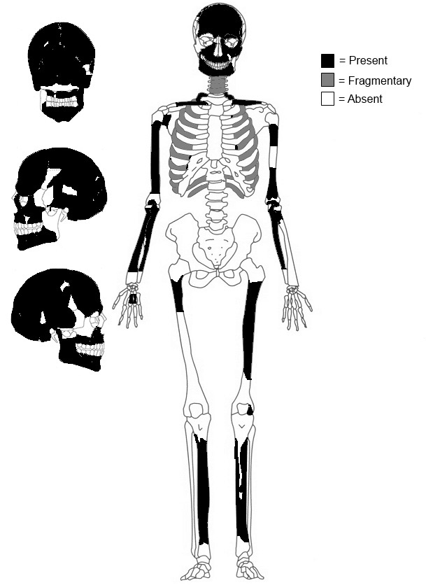 Graphic representation of the burial’s skeletal preservation shows bones that were present in black.