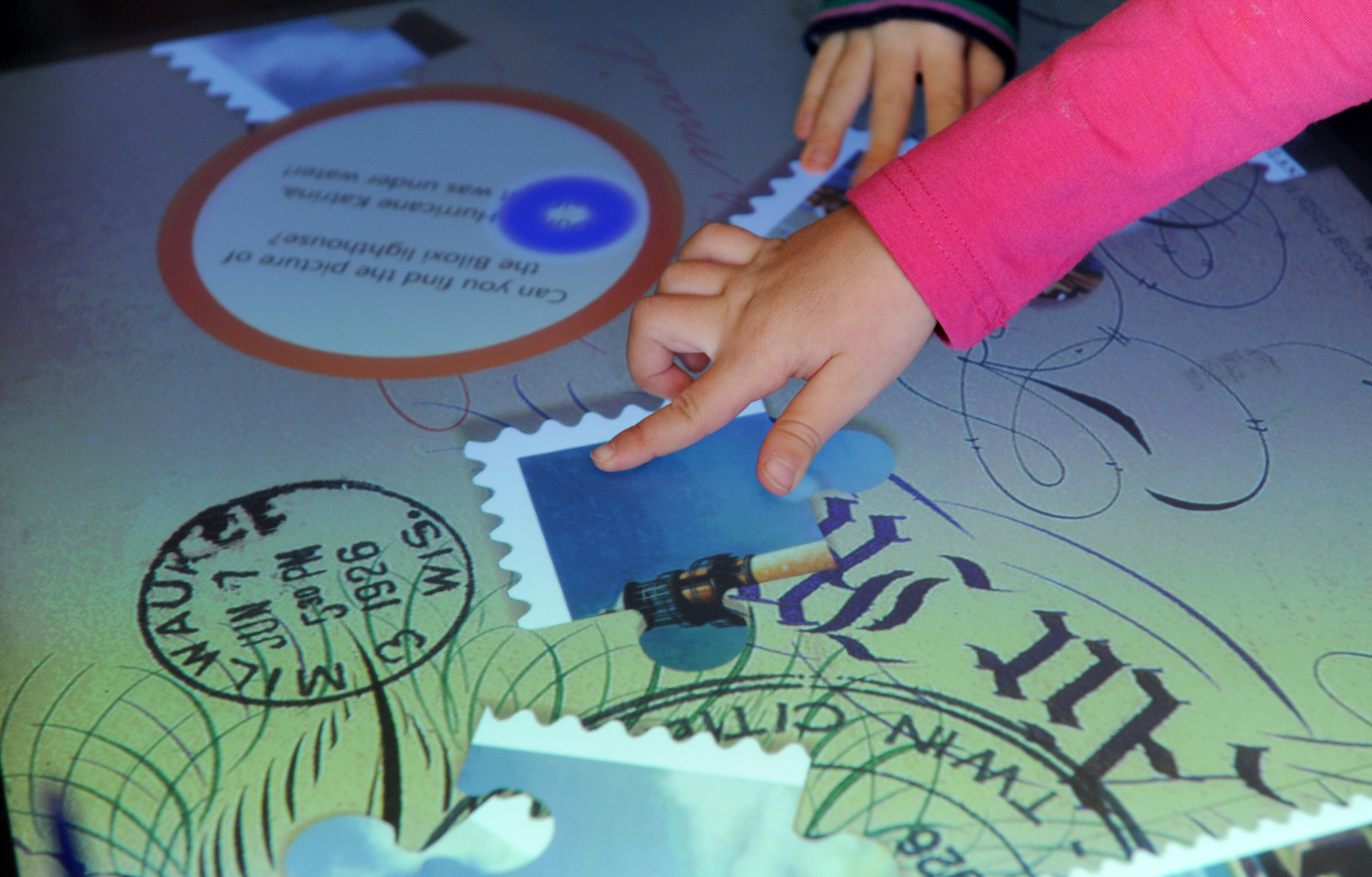 Students from the Smithsonian Early Enrichment Center play with light on a Microsoft Surface, a multitouch display that offers interaction with information and digital content. The Surface unit, which is located in the Great Hall at the Smithsonian's Castle, was donated to the Smithsonian by Microsoft. "The Wonder of Light: Touch and Learn!" exhibit opens on Tuesday, Nov. 9.
