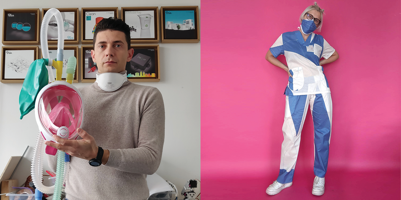Photos: Charlotte Valve and Mask, 2020, Cristian Fracassi and Alessandro Romaioli, Isinnova; Zero-waste Scrub Set, 2020, Danielle Elsener.