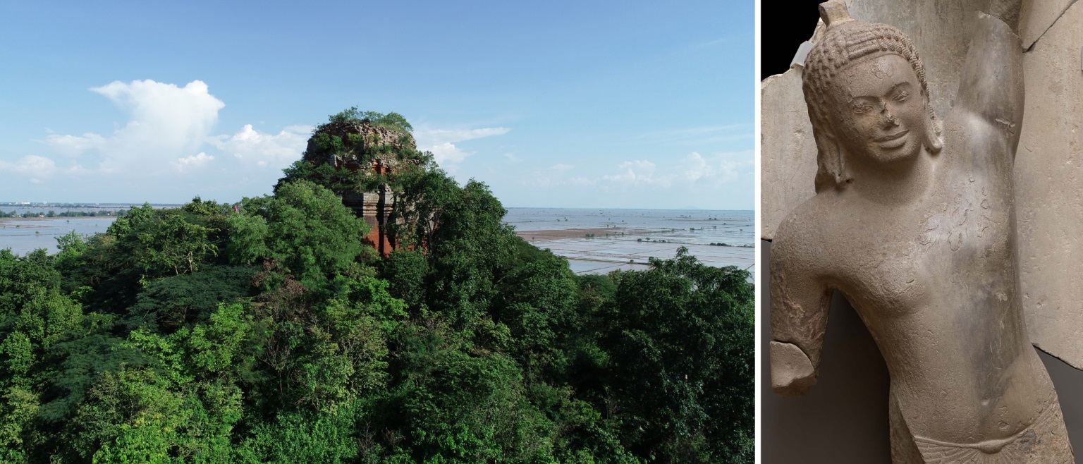 Left: Northeast peak of Phnom Da in 2019. Southern Cambodia, Takeo Province. Photo: Konstanty Kulik, courtesy of the Cleveland Museum of Art