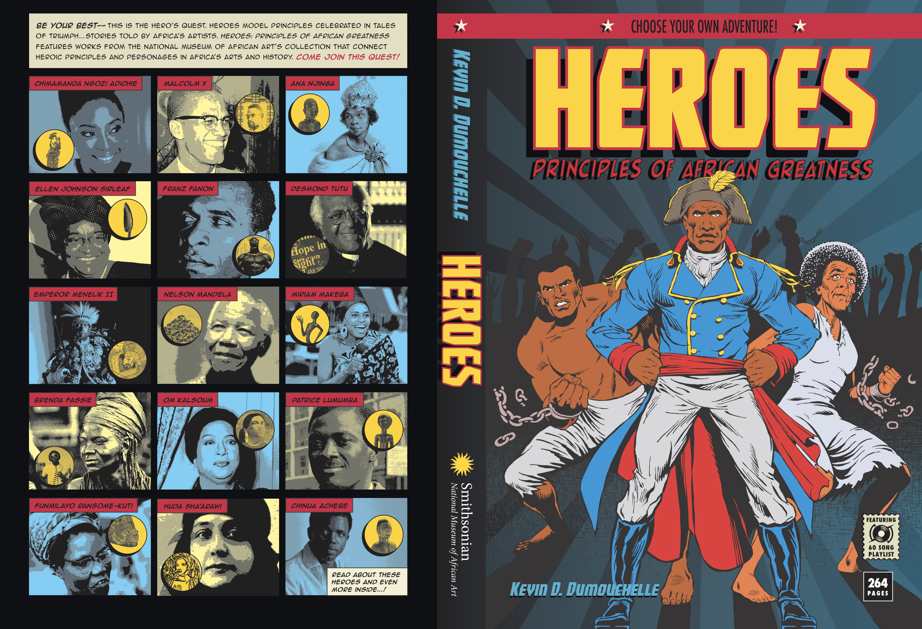 Designed in a bright, colorful and accessible graphic-novel style, the book is open-ended in layout and framed as an invitation to “choose your own adventure.” Heroes is the first collection-focused catalog from the museum to apply the National Museum of African Art’s field-leading exhibition practice of inviting connections between works by African artists across the full spectrum of time, media and geographies represented in the museum’s collections. The book is accompanied by a series of digital entry points, including a full exhibition website, a set of seven curated Google Arts & Culture interactive exhibitions (Part 1 | Part 2 | Part 3 | Part 4 | Part 5 | Part 6 | Part 7 ), as well as a playlist available on YouTube, Spotify and Apple Music of its connected songs.