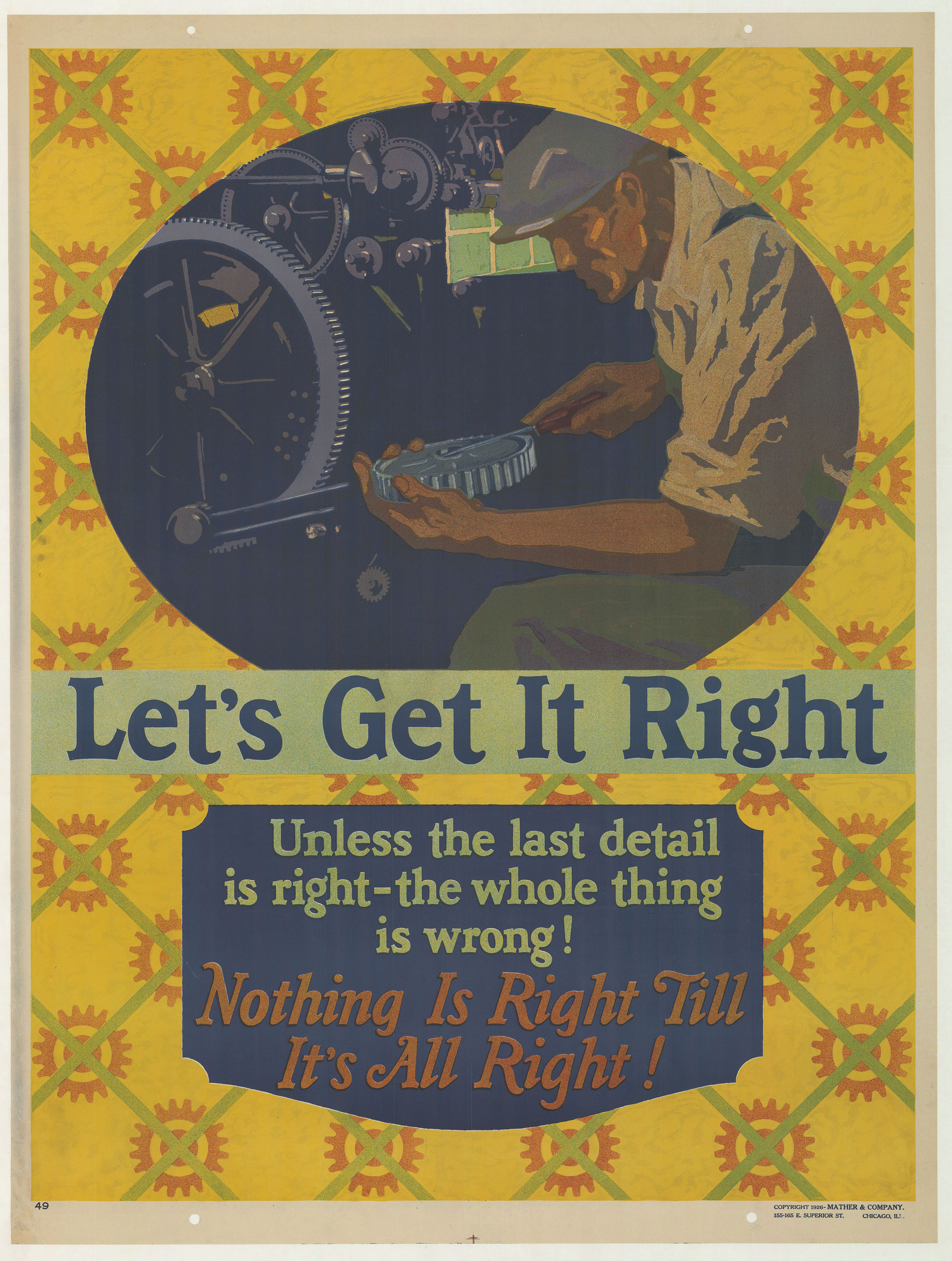 The “Golden Age” of work-incentive posters followed a campaign during World War I that used posters to mobilize Americans with great success. Managers in the 1920s hoped to use similar posters to instill positive work habits and company loyalty in their workers with eye-catching designs and succinct slogans. Although the “Golden Age” of work-incentive posters ended with the beginning of the Great Depression in 1929 when the job scarcity was enough to keep workers motivated, incentive posters became an enduring concept with messages offering timeless life advice.