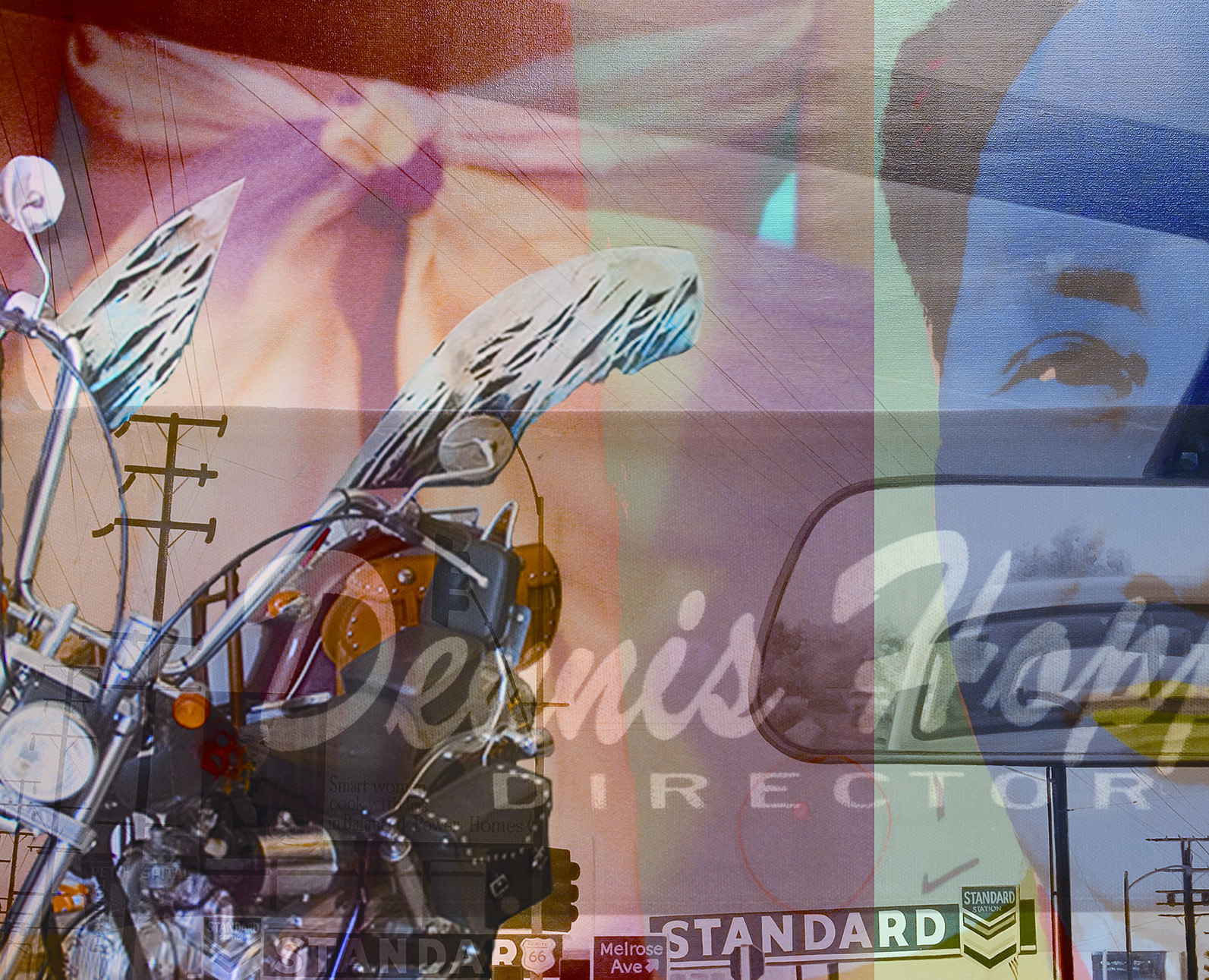 The Weingarten photographs presented in the exhibition are from his series “Portrait Unbound.” When creating his portraits, Weingarten asks his subjects the question, “What makes you who you are?” The individual then provides him with a list of ideas, experiences and objects that are meaningful. Weingarten photographs the items creating a pool of images to draw from as he begins building the layered biographical portrait on his computer. Each print has a single image that anchors the subject’s history and relates to their list, while other images emerge from the background. For example, Hopper had many passions, and Weingarten’s portrait reveals his complexity. Hopper defined himself as an artist, art collector and a lover of golf and cigars, yet many remember his role in the counterculture movement, particularly his acting and directing roles in the 1969 film Easy Rider. Weingarten combines the qualities that Hopper defined himself with his cultural legacy in a pictorial representation of his life.