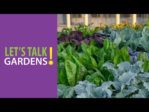 [Burrwood House]: raised vegetable garden in the spring with iris blooming outside the rail fence and climbing hydrangea on the stone wall.