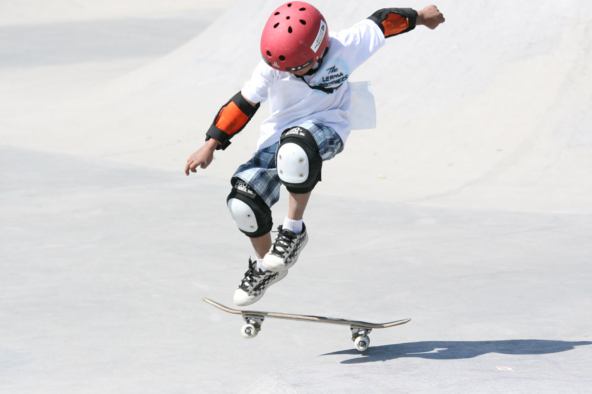 Armondo Lerma (Agua Caliente), age 7, lands a "kick-flip" at the inter-tribal All National Skate Jam in Albuquerque, N.M.