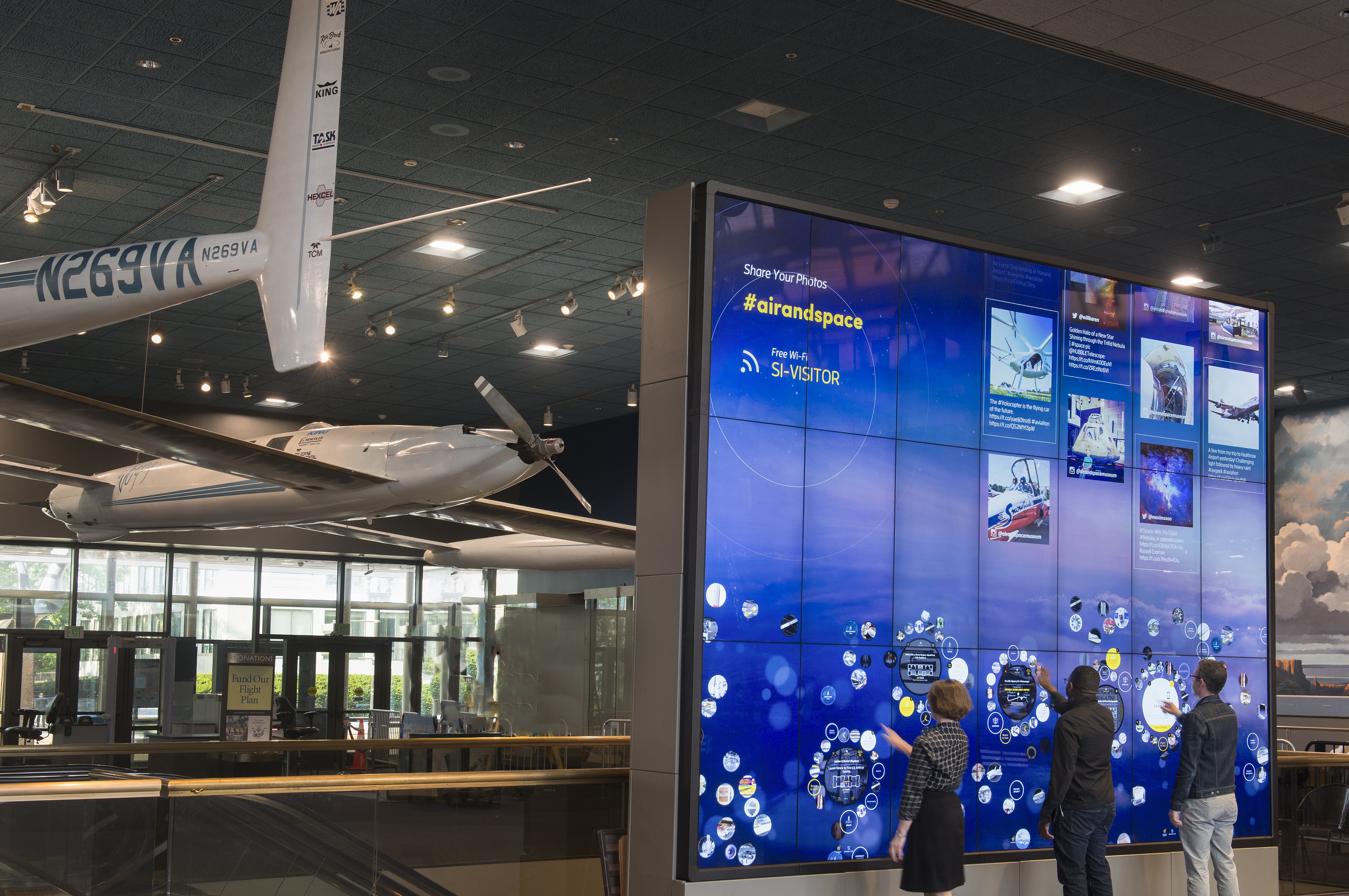 The 16-by-12-foot interactive wall is part of the National Air and Space Museum’s new GO FLIGHT digital experience. Visitors to the museum in Washington, DC, will interact with the wall in the “Boeing Milestones of Flight Hall.” It will allow them to more easily find the artifacts they want to see during their visit.