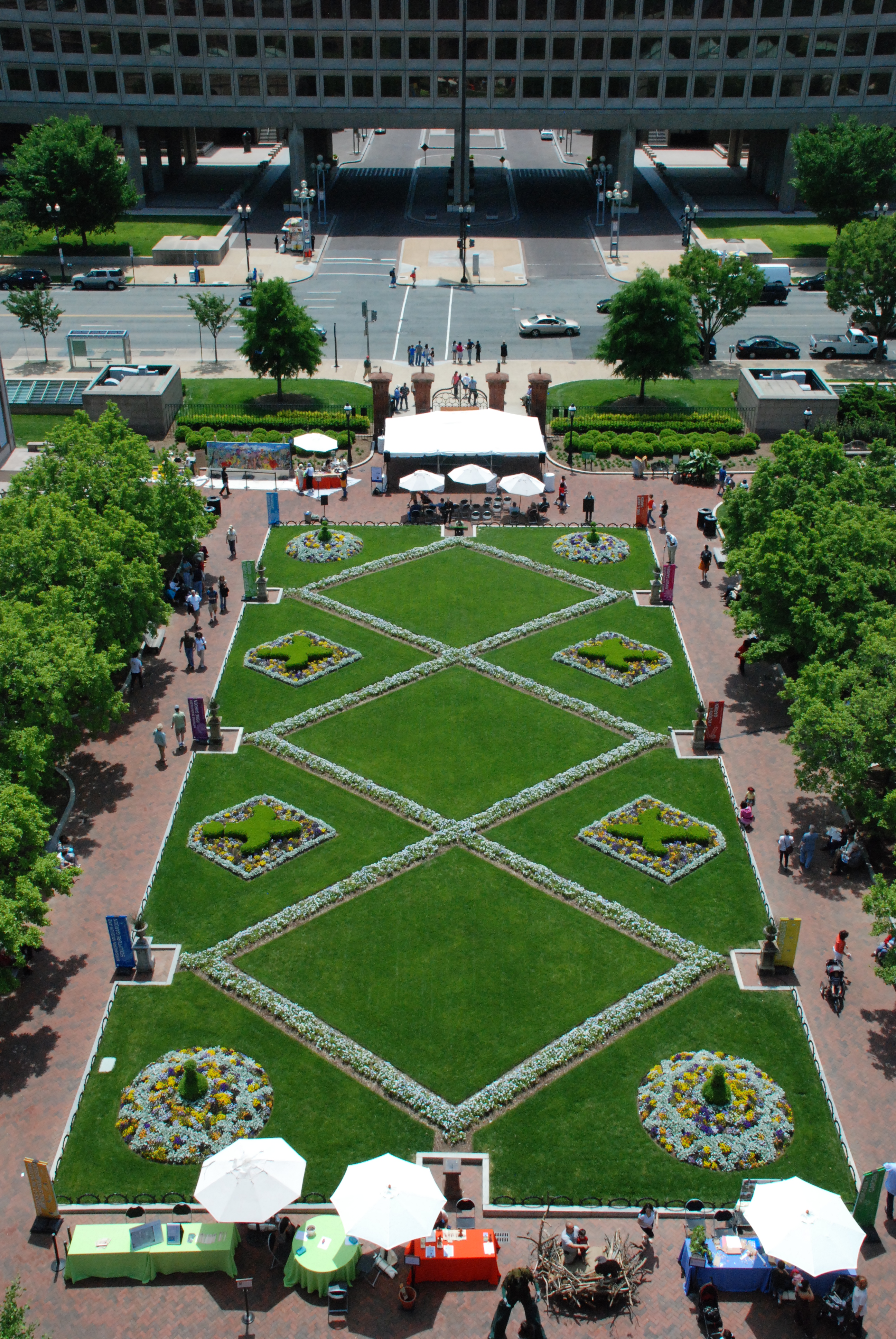 Aerial view of the Enid A. Haupt Garden, adjacent to the Smithsonian Institution Building ("The Castle") in Washington, D.C. during the Smithsonian Gardens 2011 Garden Fest: Celebrating the American Garden Experience, May 7, 2011.