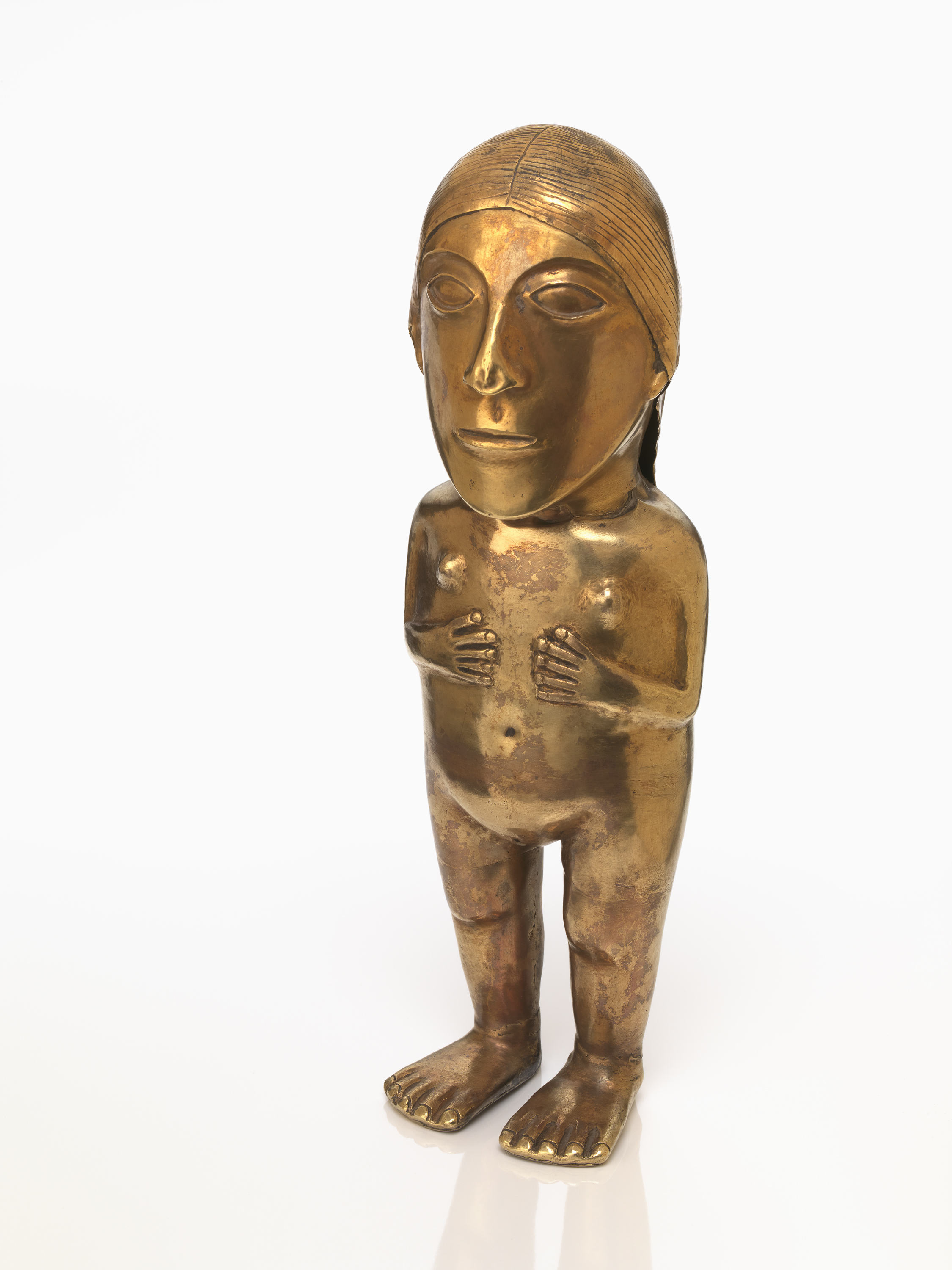 Gold Inka figurine, AD 1470–1532. Coastal Peru. Gold, 9 x 7 x 24 cm.