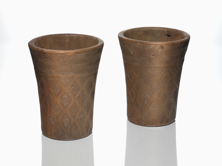 Pair of Inka qeros, AD 1470–1532. Near Cusco, Peru. Wood, 14 x 11 cm.