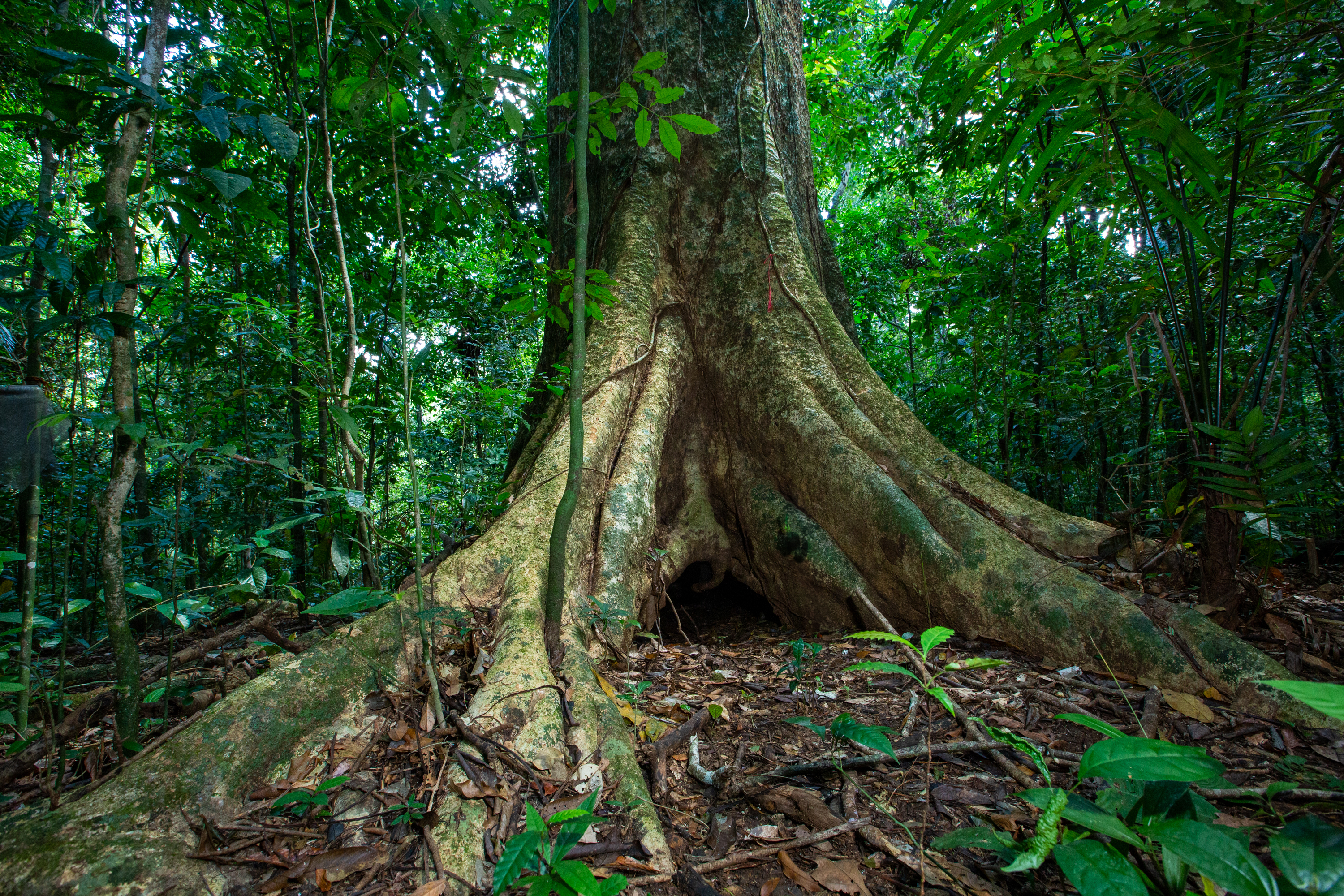 One of the largest trees on Barro Colorado Island in Panama. Tropical forests pull carbon dioxide out of the atmosphere where it causes global warming and store it as wood. But the amount of carbon stored varies depending on tree species, age, climate conditions and other factors. Verifiable estimates of carbon stored in forests are necessary to calculate carbon credits. (Photo by Steve Paton)
