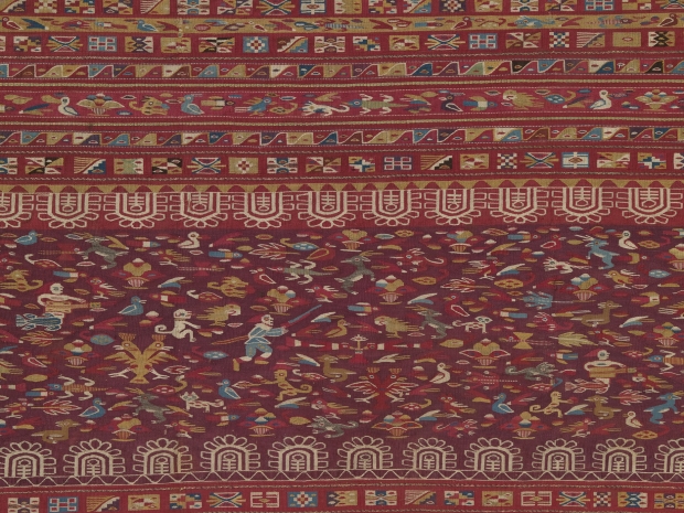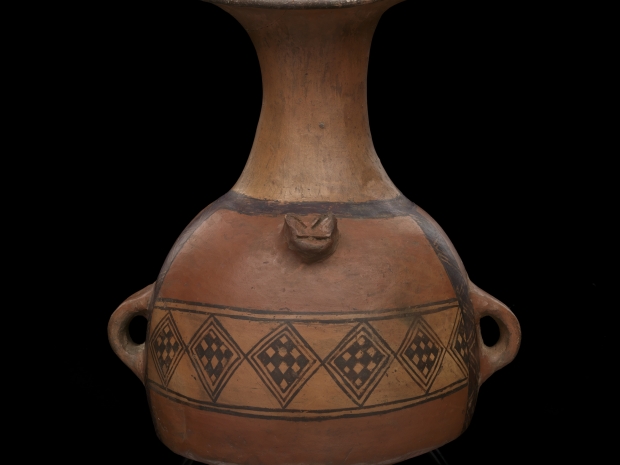 Through images, maps, models and 140 objects, including a ceramic Chavín stirrup spout bottle (the oldest item in the exhibition, ca. 800–100 B.C.), impressive gold ornaments, necklaces made from shells from the Lambayeque region, stone carvings, silver and gold figurines, and various textiles made from camelid hair and cotton. These items illustrate important concepts in Andean cosmology, the principles of duality, reciprocity and integration, and offer examples of the road’s infrastructure and spirituality.