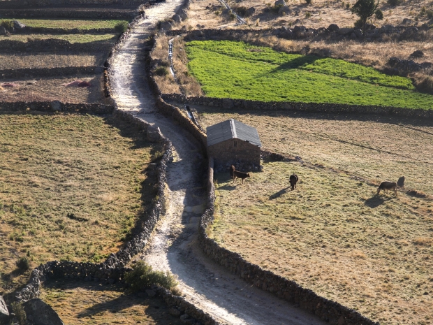 The paved road is more than 24,000 miles in length, runs north to south crossing through Argentina, Bolivia, Chile, Colombia, Ecuador and Peru. The Inka Road engaged impressive engineering strategies in response to the challenges presented by the rugged Andes mountains. This landscape ranges from coastal desert to high plateau and uneven cordillera (a system of mountain ranges) separated by valleys characterized by biodiversity and many unique ecosystems.