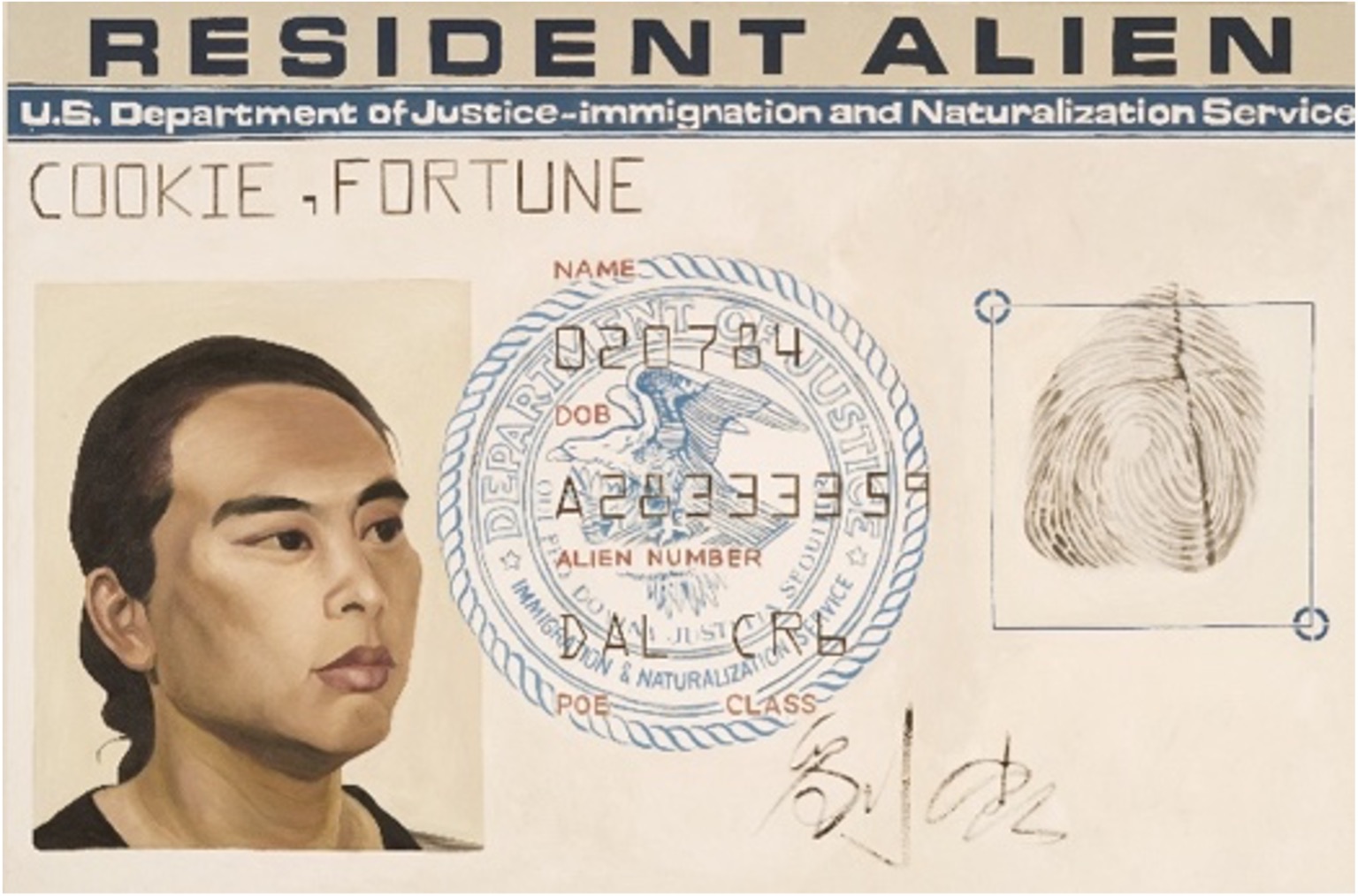 “Resident Alien” by Hung Liu, oil on canvas, 1988. Collection of the San Jose Museum of Art; gift of the Lipman Family Foundation. Copyright Hung Liu.