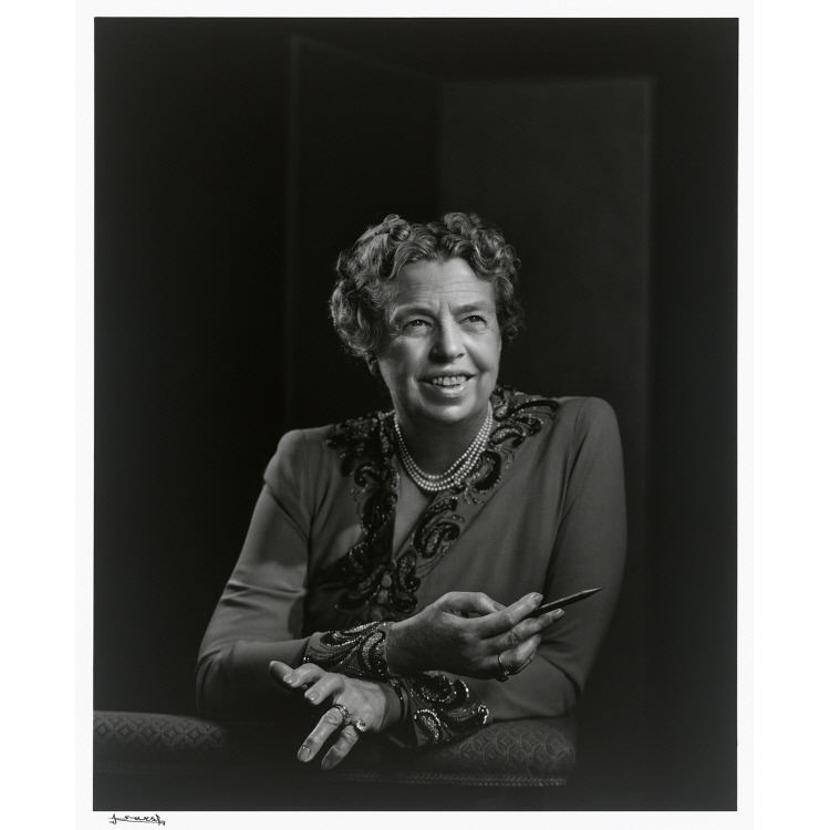 “Eleanor Roosevelt” by Yousuf Karsh, gelatin silver print, 1944. National Portrait Gallery, Smithsonian Institution; Gift of Estrellita Karsh, in memory of Yousuf Karsh. Copyright: Estate of Yousuf Karsh.