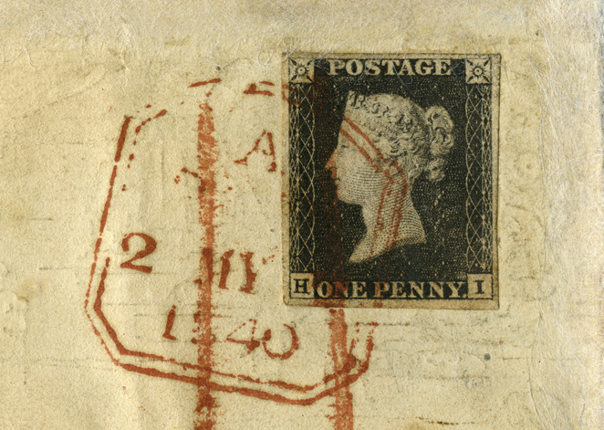 On May 1, 1840, Great Britain issued the world’s first postage stamp: the Penny Black. It revolutionized postal services worldwide. Mulready postal stationery lettersheets were also officially issued on that day. Neither the stamps nor the stationery were valid to prepay postage before that date; however, a few Penny Blacks and Mulready “covers” are known to have passed through the post office before the official date of issuance. The May 2, 1840, cover being displayed at the museum is the only known item carrying both the Penny Black and Mulready One Penny letter sheet.