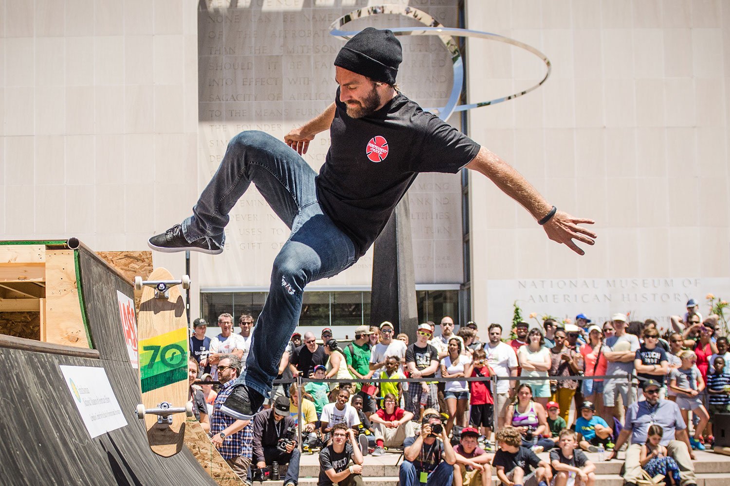 Chris Haslam gives a skateboarding demonstration at Innoskate 2013 in front of the National Museum of American History. Image courtesy Innoskate.
