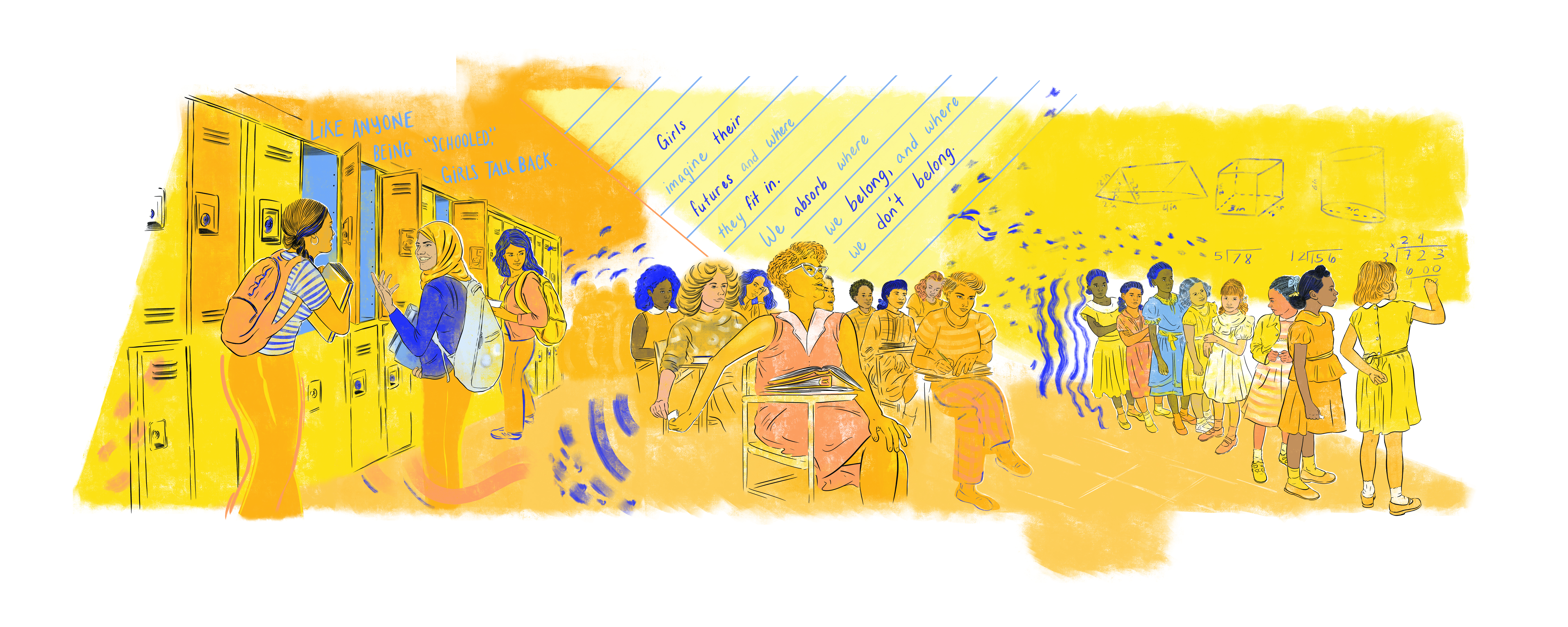 El diseño de la exposición está inspirado en revistas y fanzines (revistas autoeditadas) escritas por y para niñas. Cuenta con murales personalizados del tamaño de una pared e ilustraciones de la artista Krystal Quiles basadas en fotografías históricas. Entre los ocho vídeos de la exposición se encuentran una experiencia de entrada animada, un vídeo de maquillaje, imágenes de huelgas escolares históricas dirigidas por estudiantes y una compilación de películas de educación sexual producidas por el gobierno de EE. UU. desde 1919 hasta 1957.
