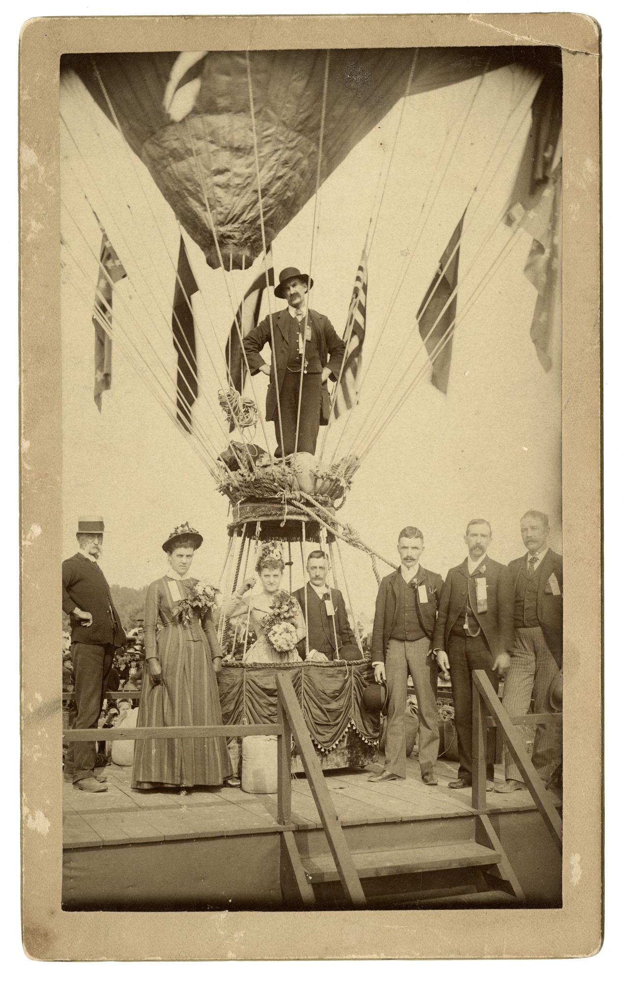 The wedding party for Margaret Buckley and Edward T. Davis with aeronaut James Allen, Sept. 27, 1888. National Air and Space Museum Archives, Smithsonian Institution