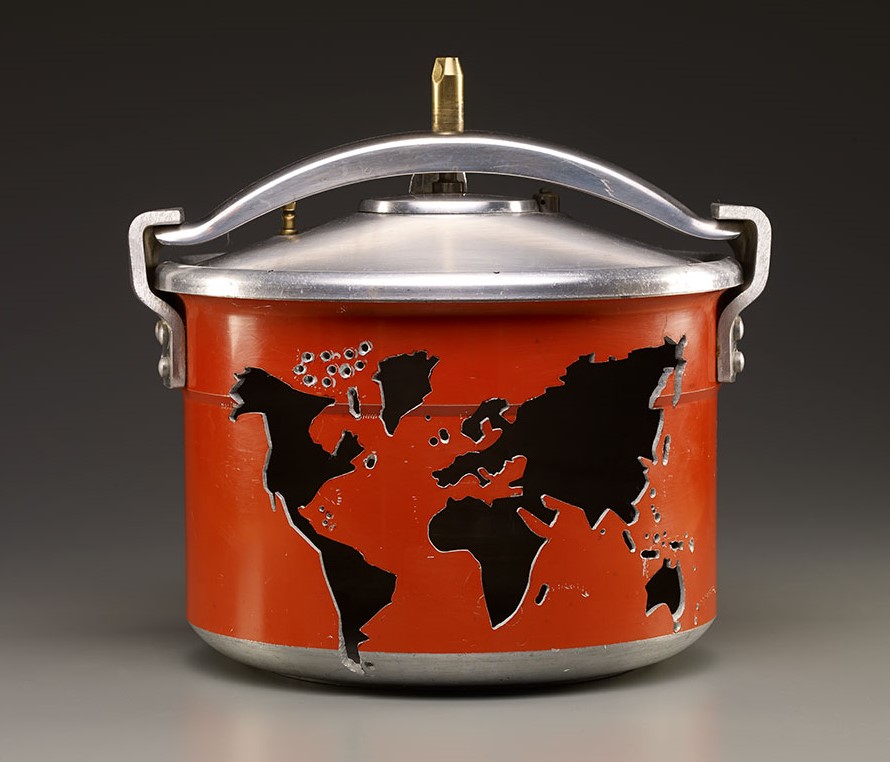 In her untitled 2011 sculpture from the series "World Under Pressure," the pressure cooker draws attention to the underwhelming representation of women and women’s issues on a global level. It’s also alluding to the mounting pressure for change.