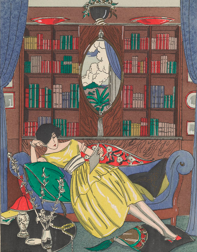 Could this be the perfect weekend? This dreamy library scene is from the pages of “La Guirlande” (1919), a limited-edition design publication with 800 numbered copies. The title in Smithsonian Libraries and Archives is noted as a gift of “the Misses Hewitt, 1921-1922,” founding sisters of Cooper Hewitt, Smithsonian Design Museum.