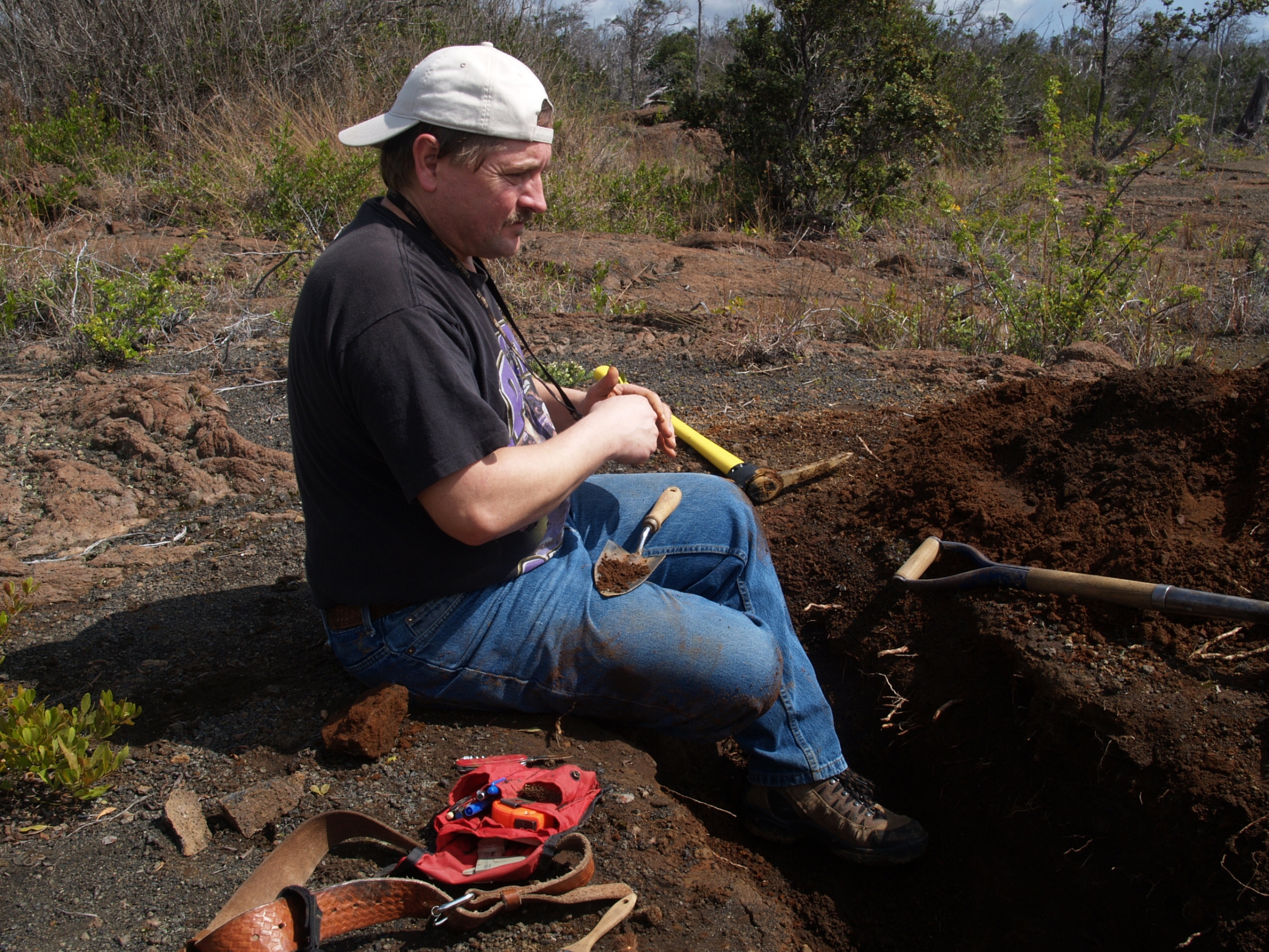Tim Rose in Hawaii, where he collects specimens related to the study of the volcano Kilauea and its explosive history. Rose has been a part of the project for more than 20 years. Credit: Image courtesy Time Rose