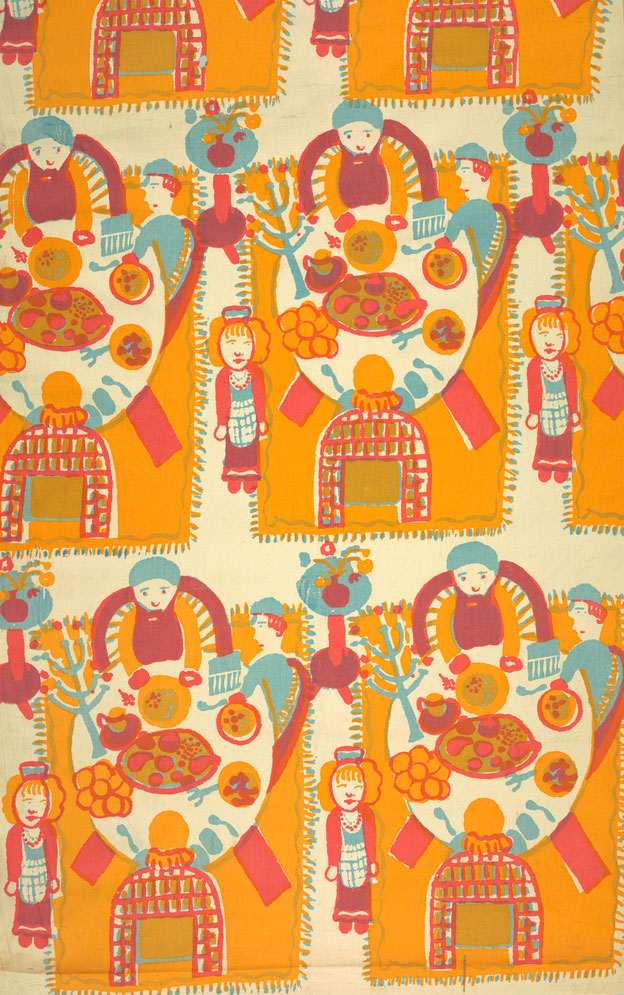Textile: “The Seder.” Designed by A. Nedby. United States, 1930s. Screen printed on cotton. Gift of the Estate of Ella Ostrowsky.