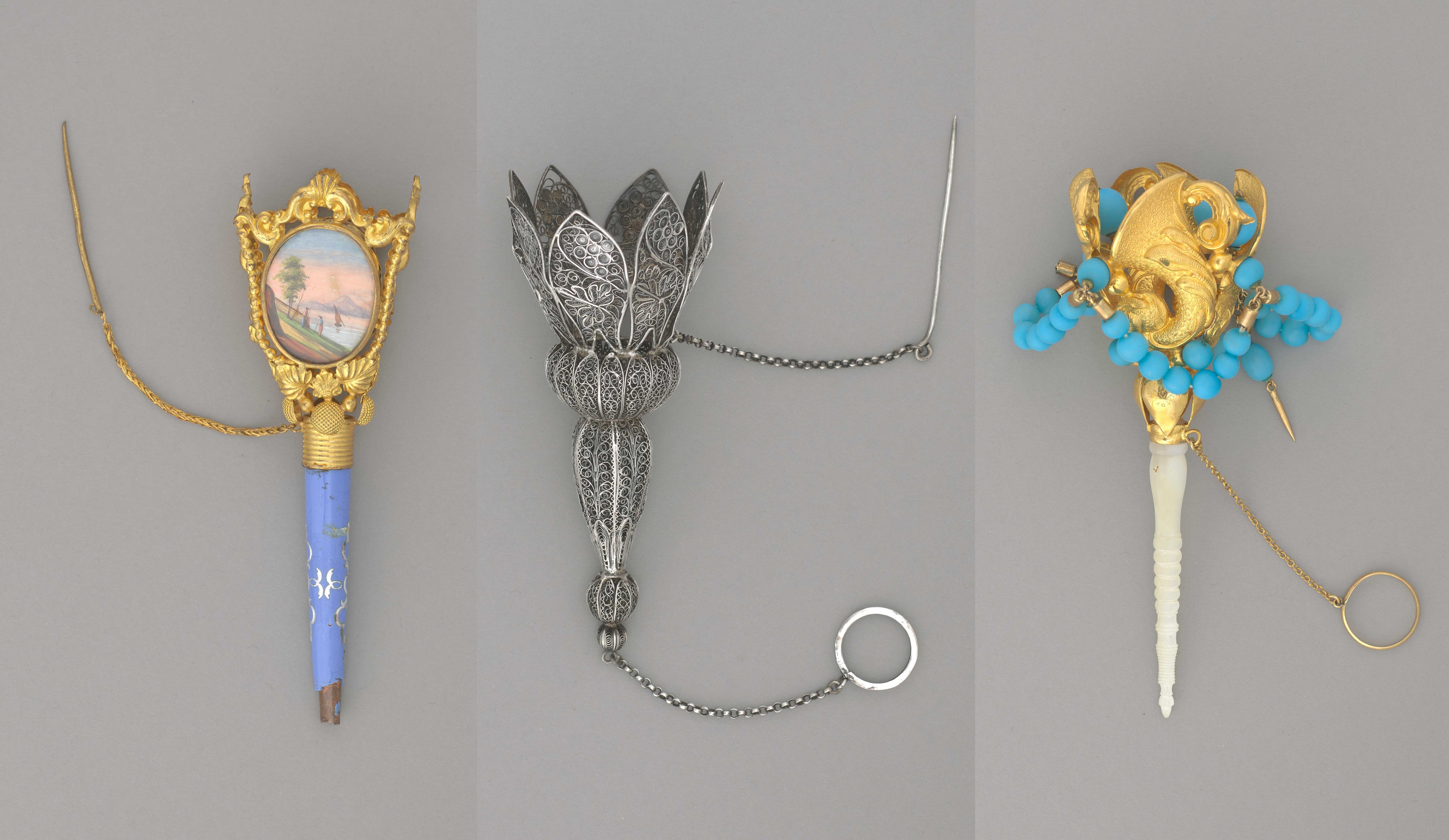 They were made from a variety of materials, including pierced metals, ivory, painted porcelain, mother-of-pearl, and even wicker. The finest ones were fashioned out of gold and silver and inset with semiprecious jewels.