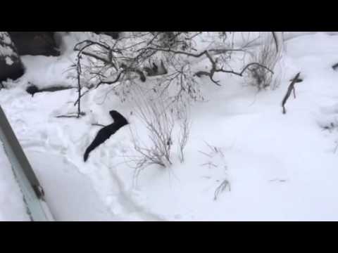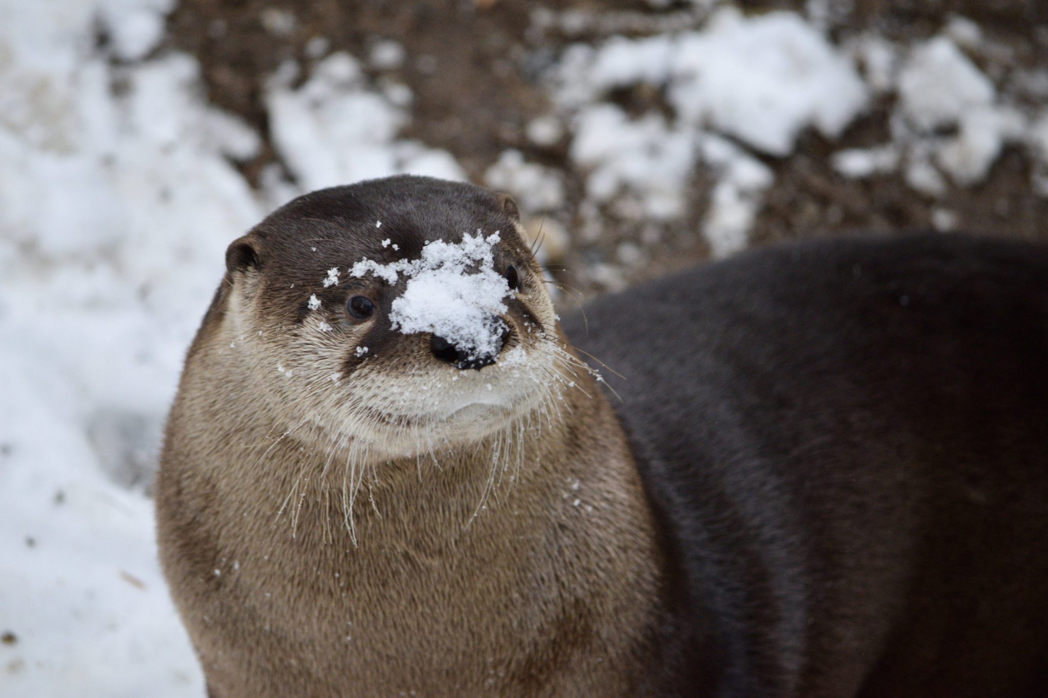 One of the Zoo's North American river otters plays in the snow in January 2024.
